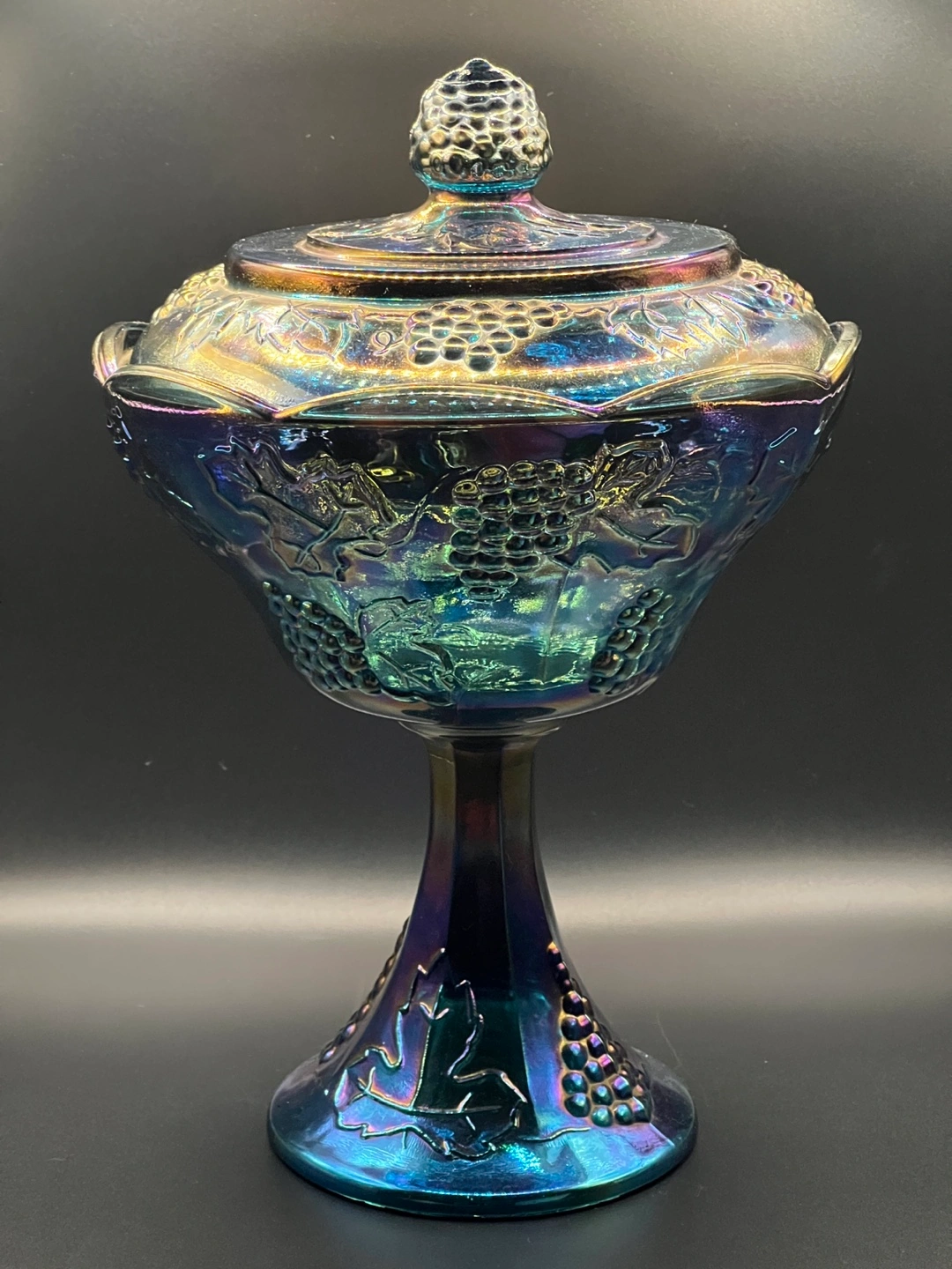 Vintage Iridescent Carnival Glass Candy Dish with Lid