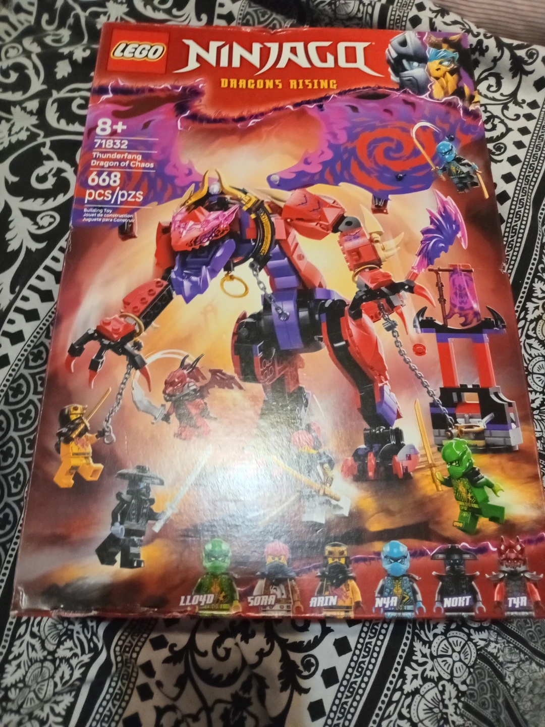 This is the LEGO Ninjago Thunderfang Dragon of Chaos building set, number 71832. It includes 668 pieces. Building toy for ages 8 and up.