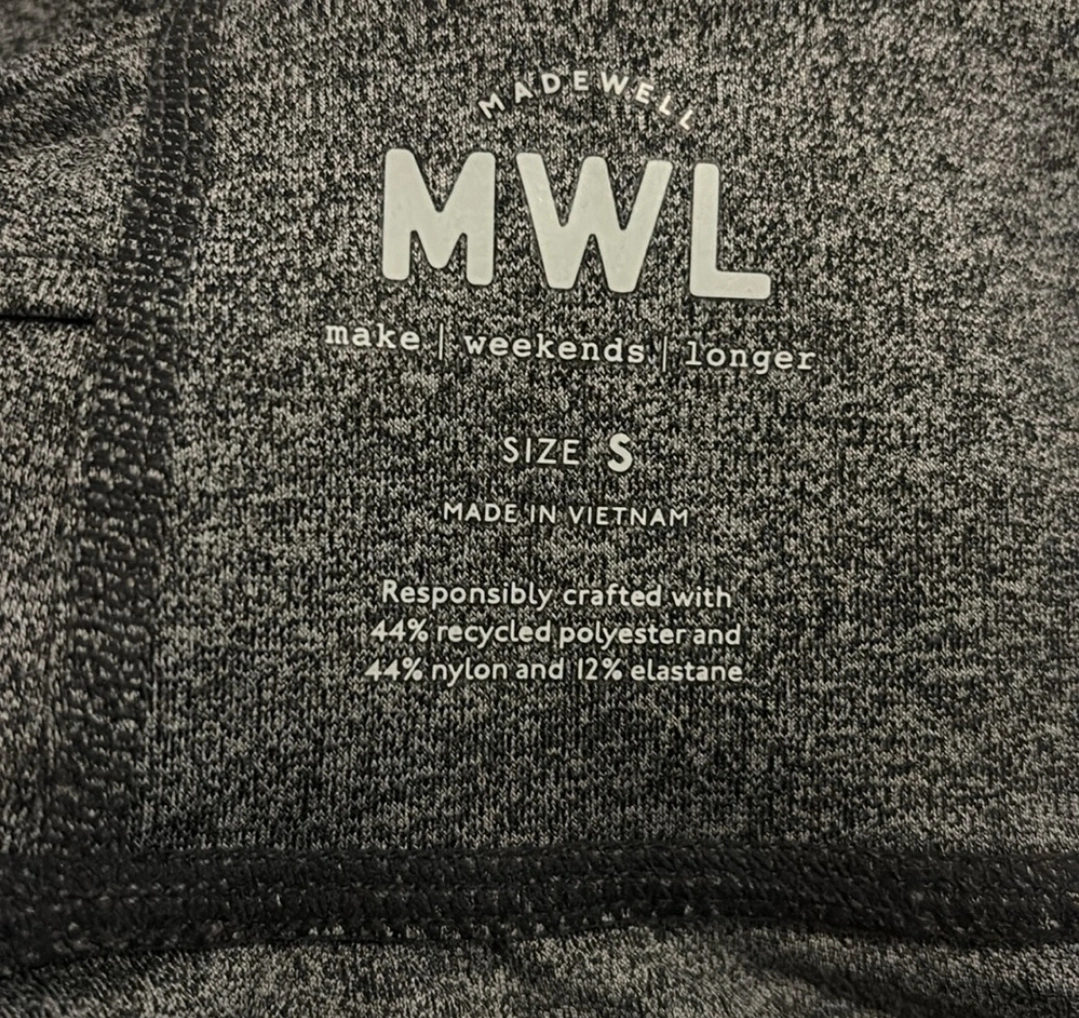 125Grey marl high-rise 7/8 leggings. Size small. Madewell brand. 44% recycled polyester, 44% nylon, 12% elastane. Machine wash cold. NWOT retails $120