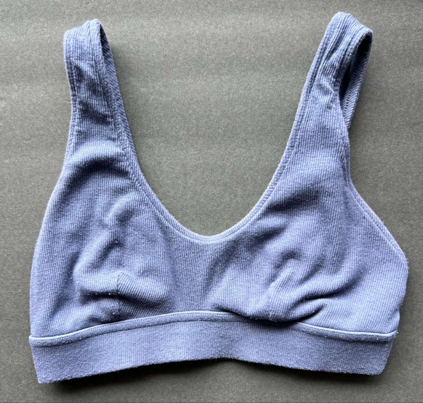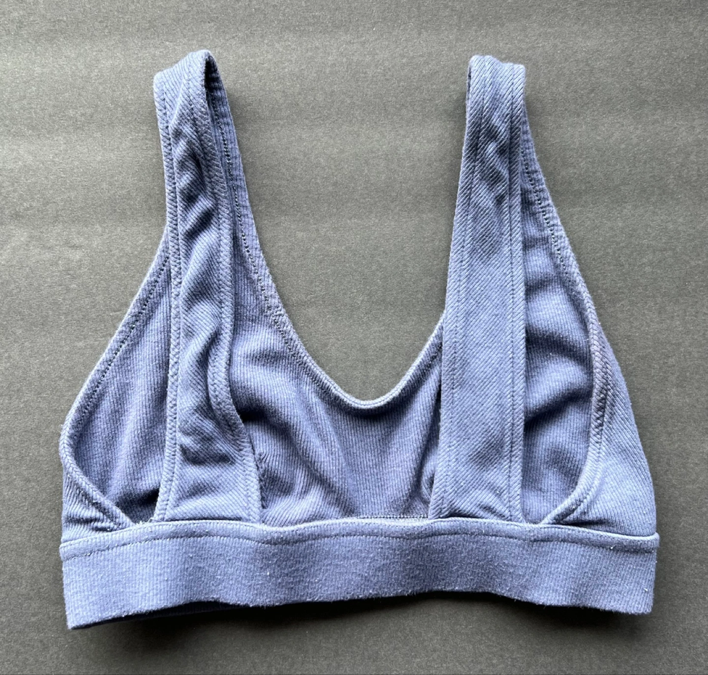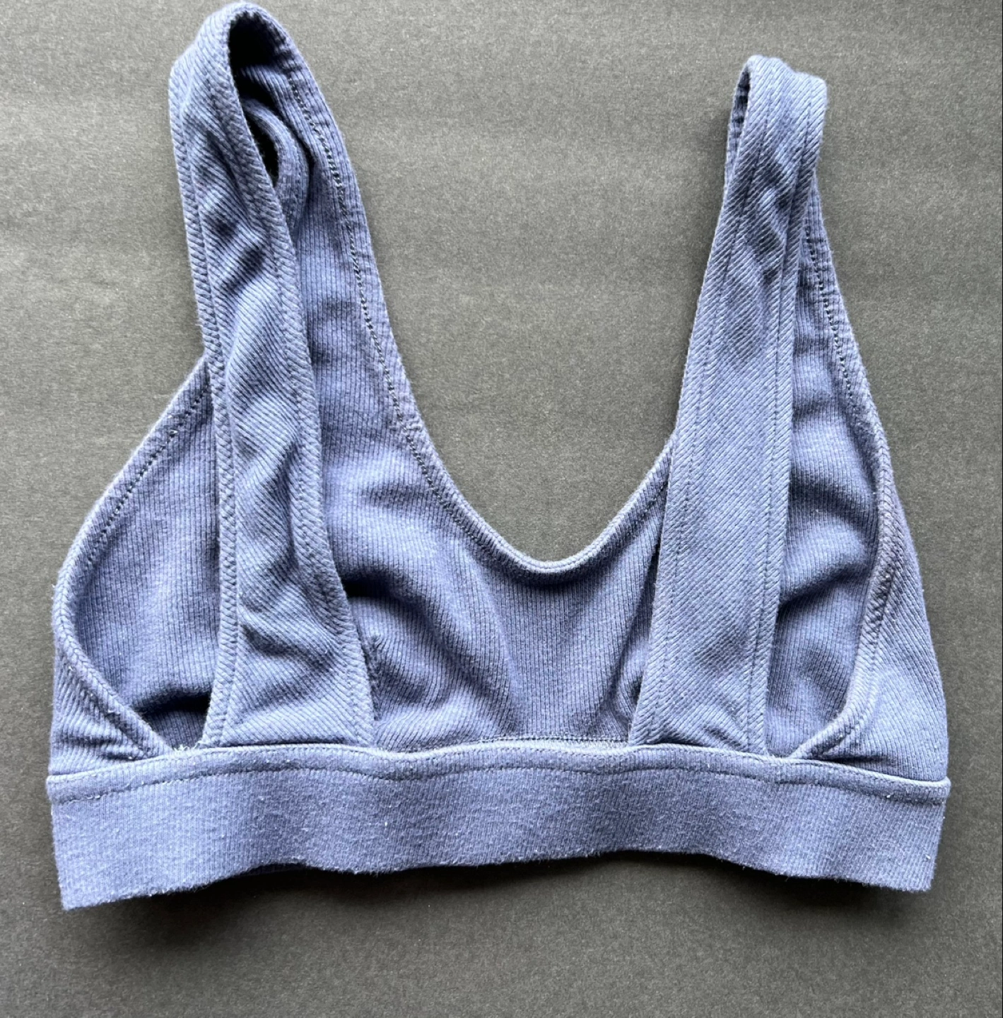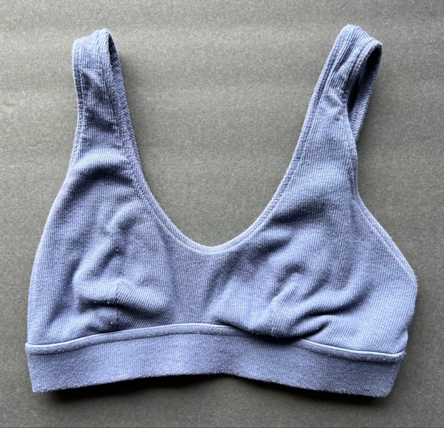 205Dusty blue ribbed bralette. Scoop neck. Lightweight fabric. Soft and comfortable. Perfect for layering or everyday wear.