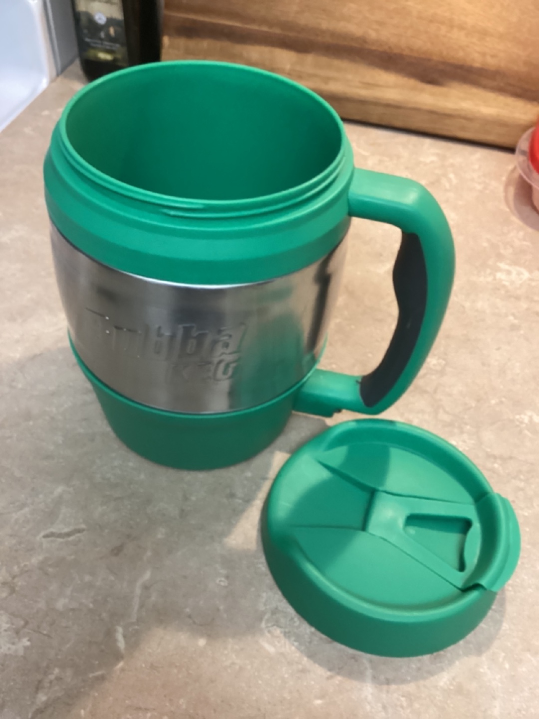 52oz Buba Keg. Green & stainless steel-colour. Features a sturdy non drip lid and handle. Great for keeping your drinks cold or hot.