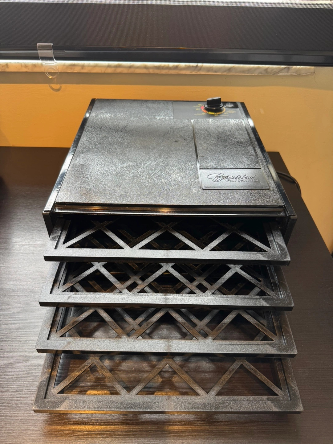 I'm selling a used Excalibur food dehydrator with 4 trays, perfect for making jerky, fruit leather, or dried fruits and vegetables. This model features a temperature control for customized dehydration. This dehydrator has been well-maintained and is in good working condition, ready to help you create healthy snacks at home.