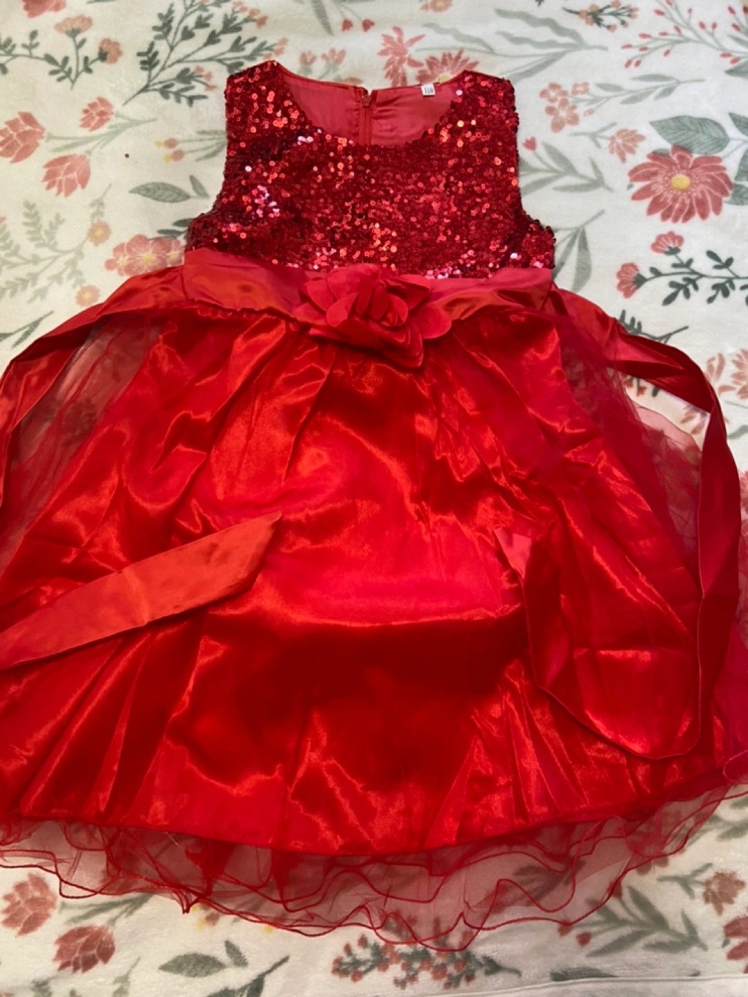 Brand new. Beautiful red party dress. Sequin bodice and tulle skirt. Features a satin sash. Sleeveless. Size 110. For 3-4yrs old. Little one changed her fave colour to pink.🤦🏻‍♀️ Only available for pick up.