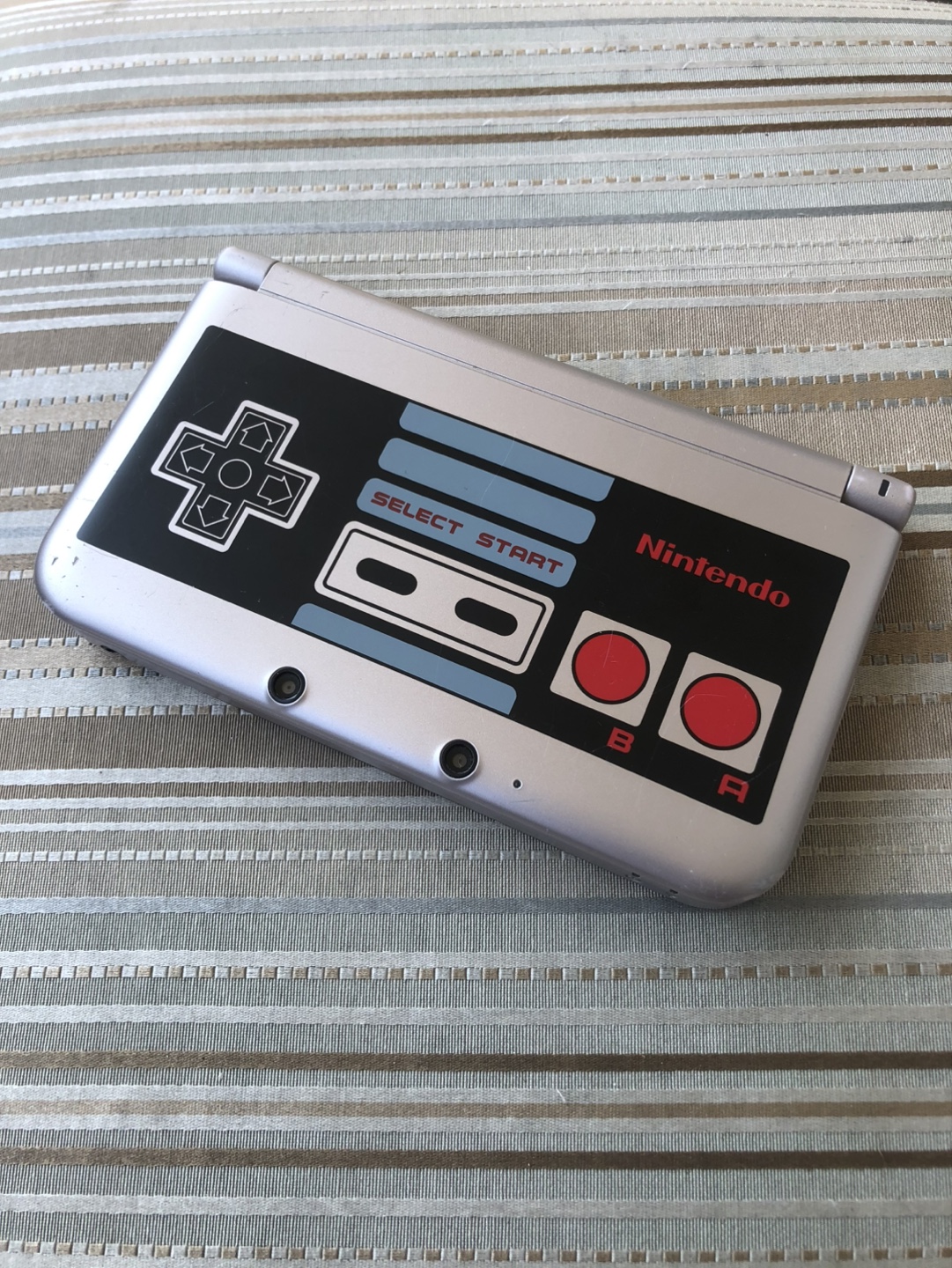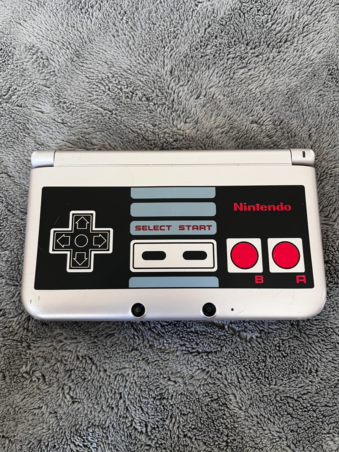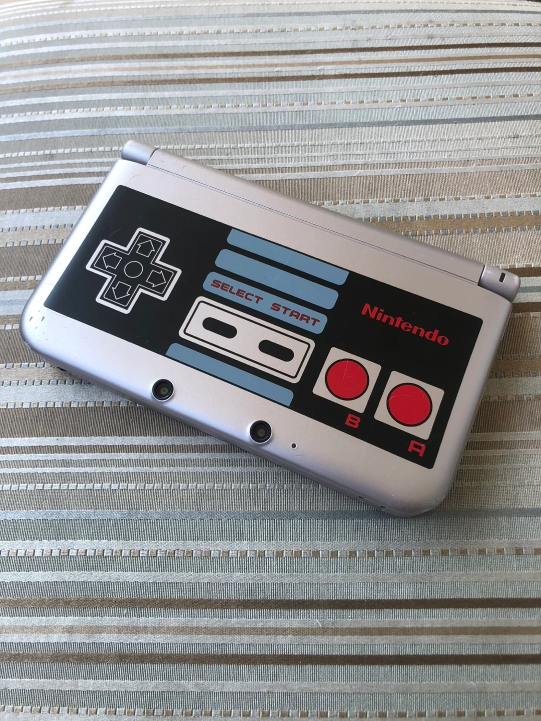 Modded Nintendo 3DS XL NES edition with 60+ games installed.