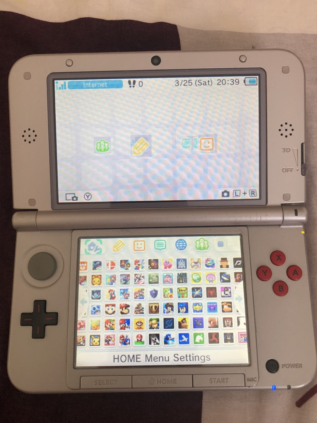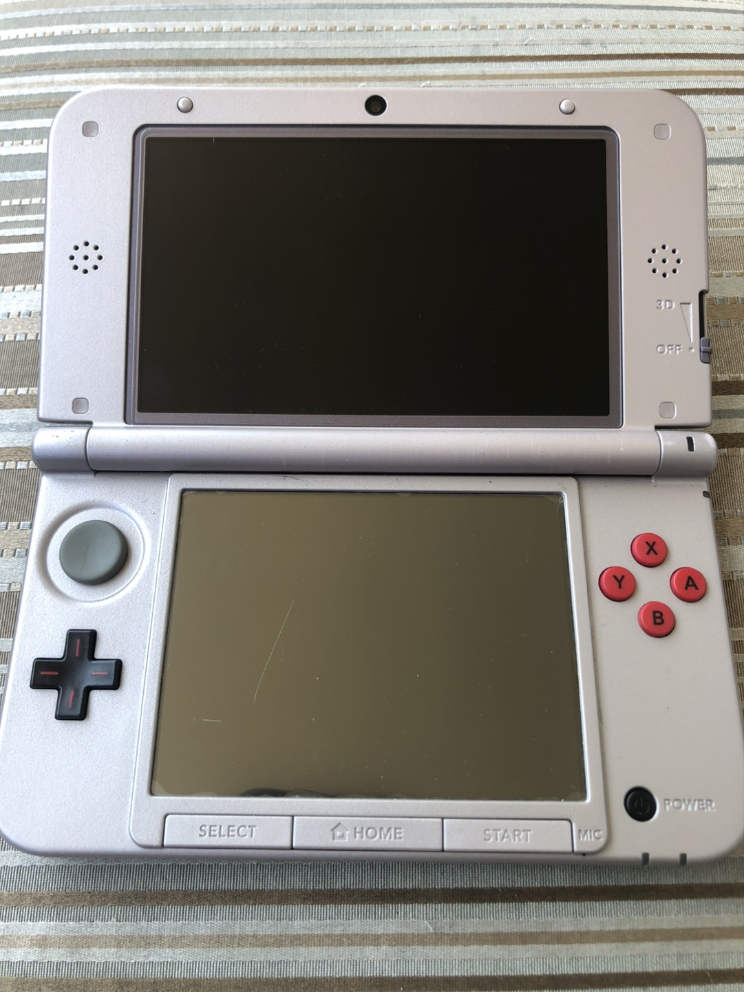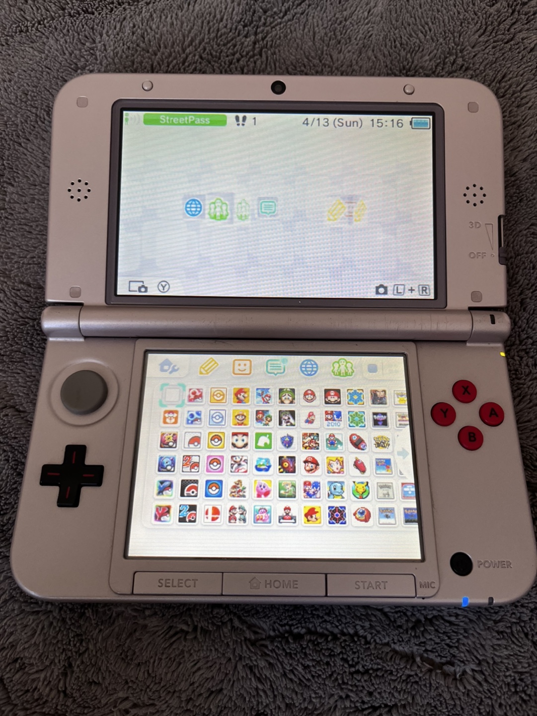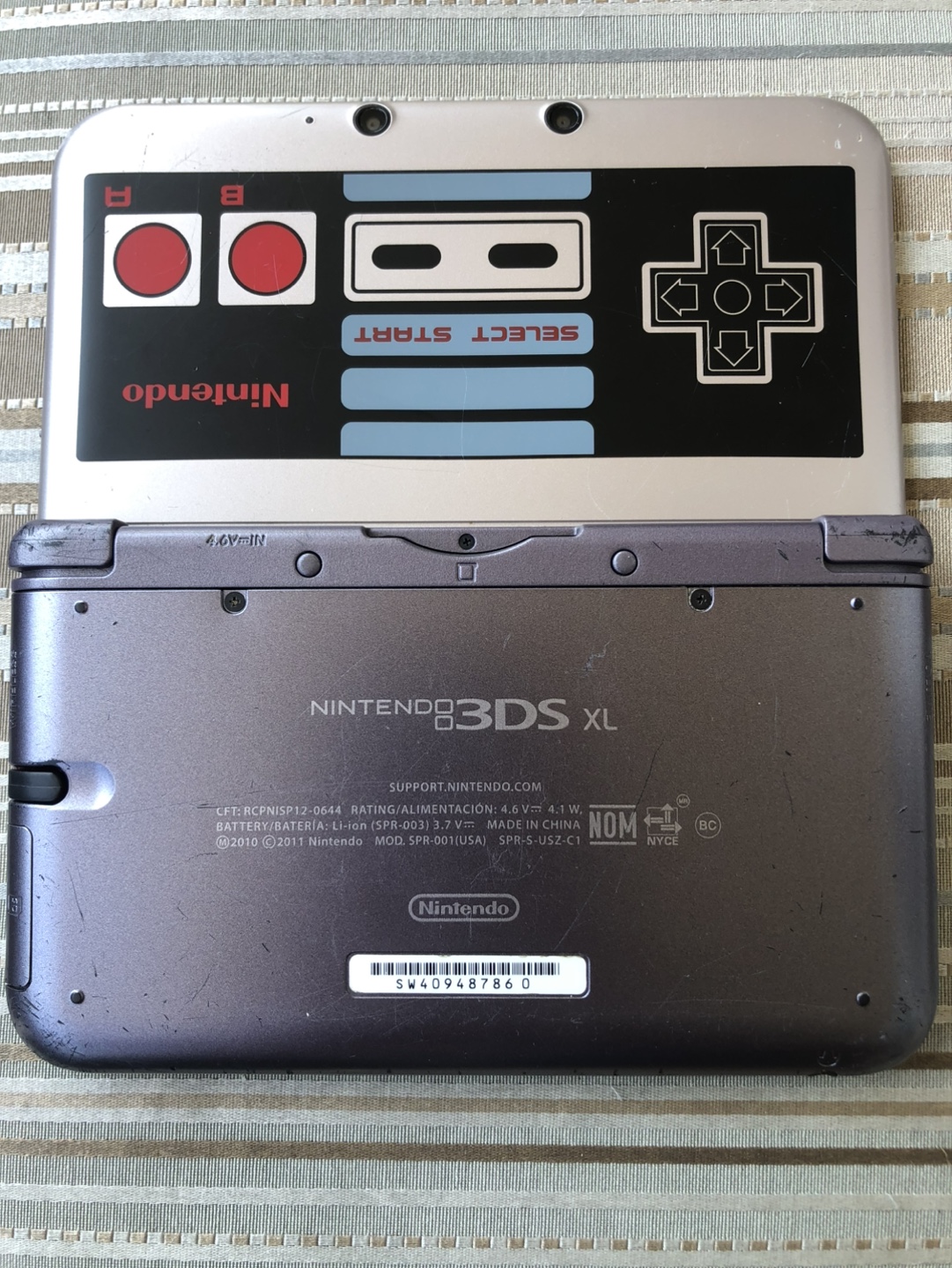 Modded Nintendo 3DS XL NES edition with 60+ games installed.