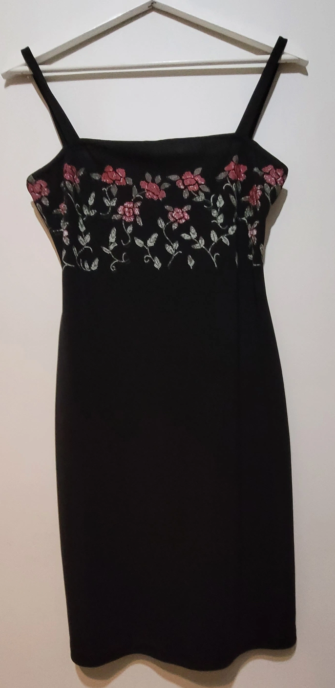 Spaghetti strap black mini dress with delicate dotted floral design. In a close-fitting silhouette. ♡No Holds ♡First Come First Serve ♡Serious Buyers Only Please.