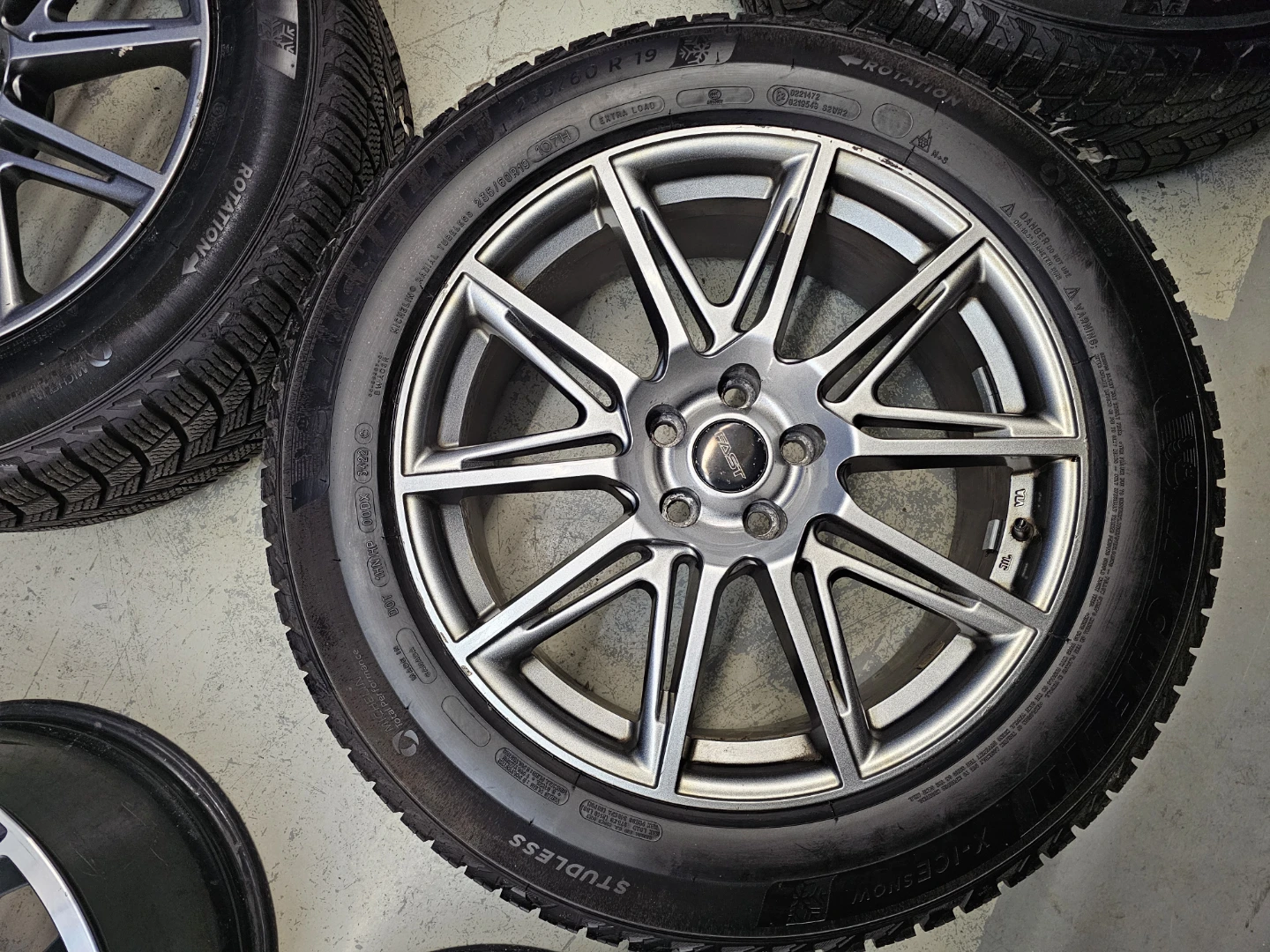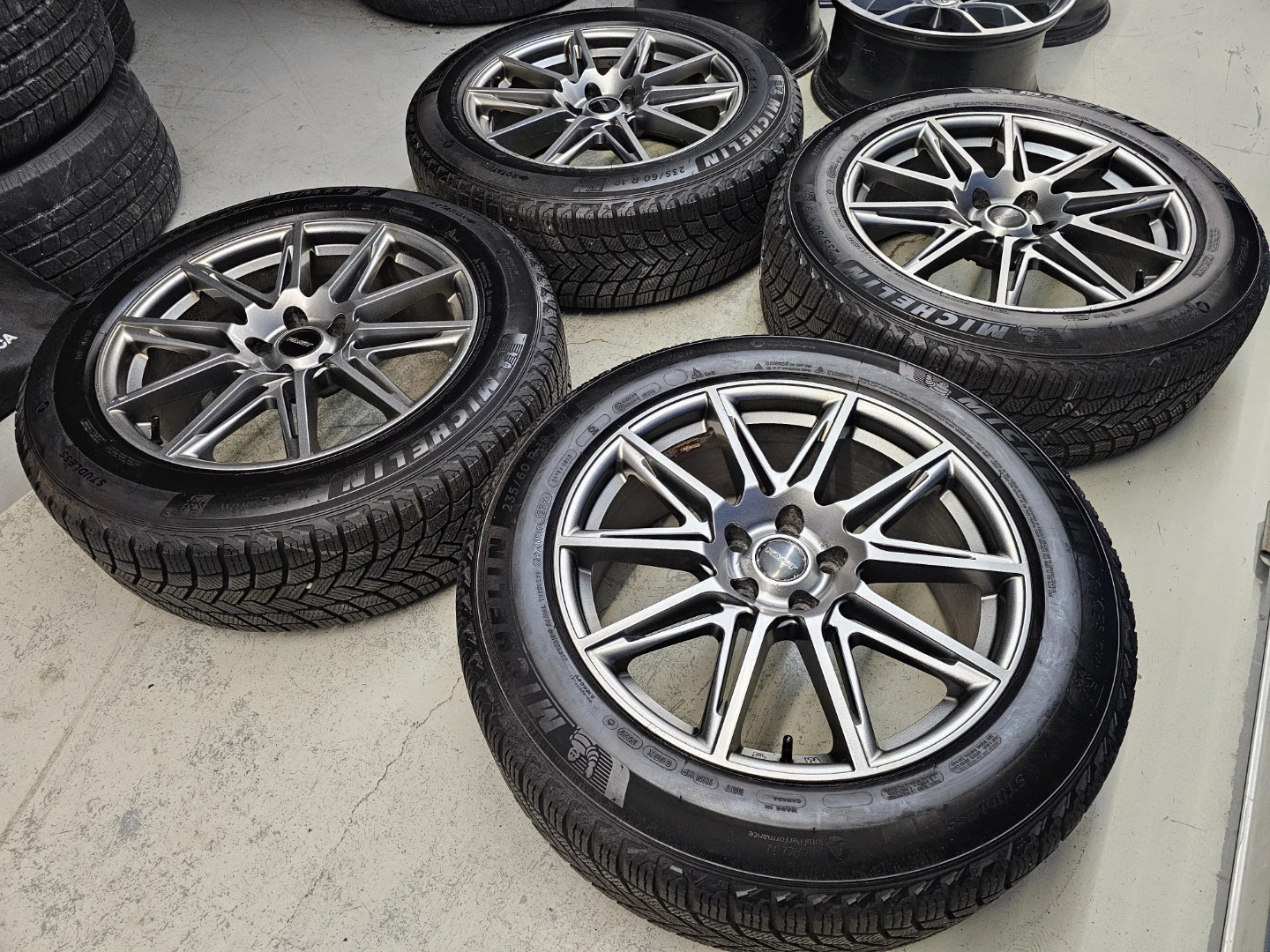 Set of 4 19" Michellin X-ICE winter tires on alloy rims which fits Toyota highlander/Lexus RX350 235/60 R19. Rims and tires are in good shape, no bend, no cracks, no damage. Approximately 90% thread left on tires