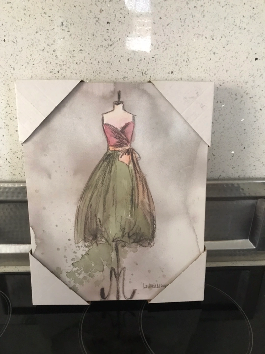 Pretty watercolour-style painting on canvas, measures 14x11”. Features a dress on a mannequin. Never used, been in closet for several years. Purchased $14.99+tx at Homesense, asking $10. Pickup north Ajax.
