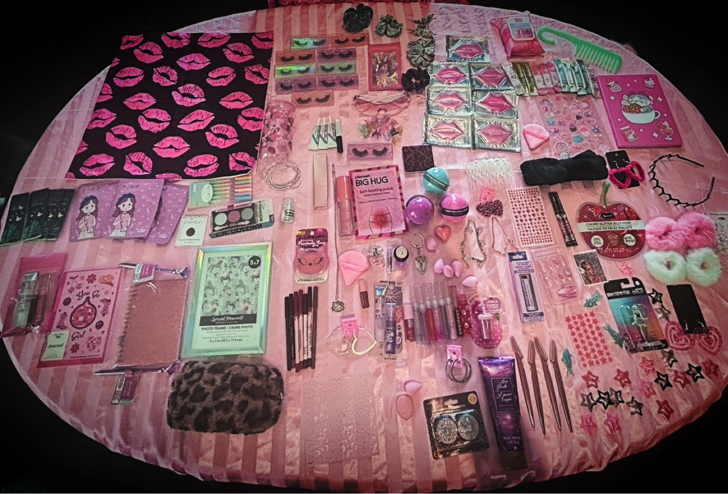 Think Hello Kitty, Versace, shimmer, self-care + soft girl energy. A full glow-up in one curated haul. Retail value over $450+.