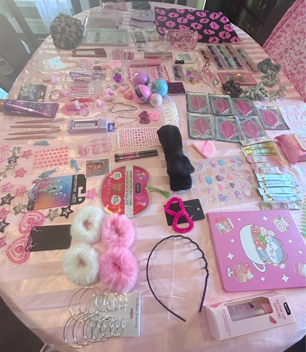 Think Hello Kitty, Versace, shimmer, self-care + soft girl energy. A full glow-up in one curated haul. Retail value over $450+.