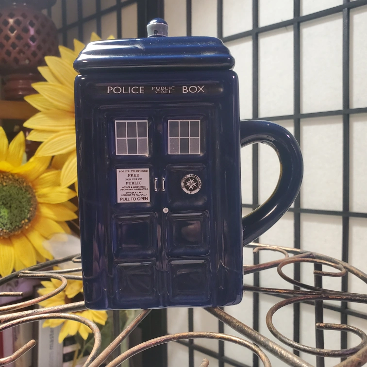 Calling all Whovians! I'm selling a pre-owned Doctor Who Tardis mug that's ready to add a bit of time-traveling fun to your morning coffee or tea. It's a quirky way to show off your fandom. Please examine the photos closely to understand the pre-owned condition.
