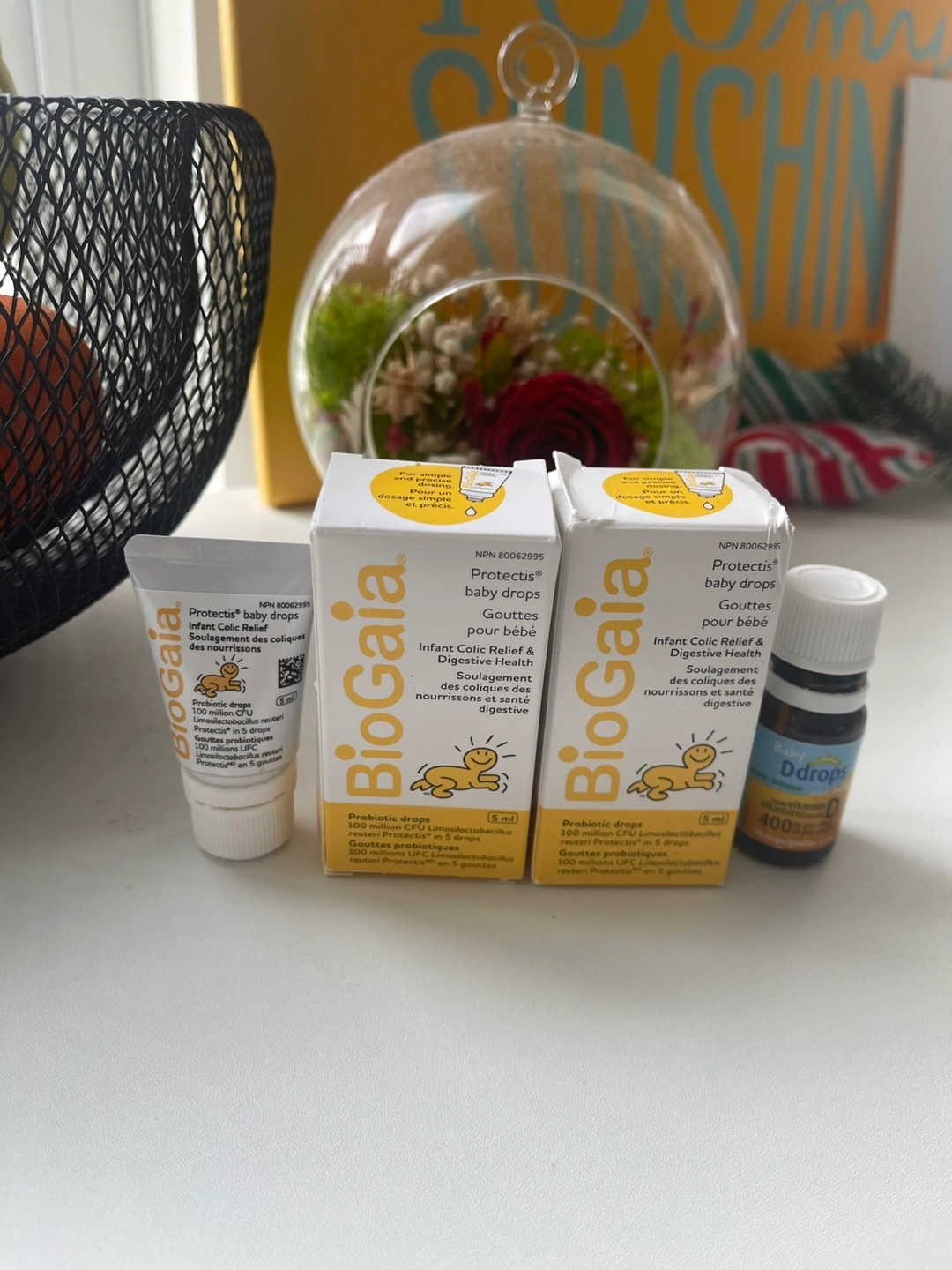 Two boxes of BioGaia Probiotic baby drops, 10ml each. Infant colic relief and gut health. Expiry date 01.2026.