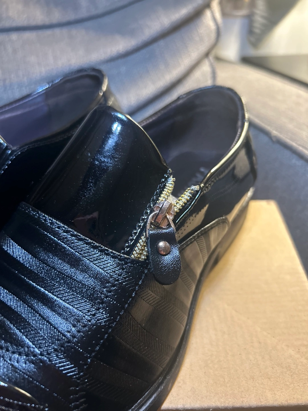 Men's Black Patent Leather Dress Shoes with Side Zipper