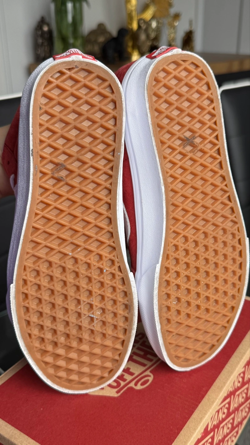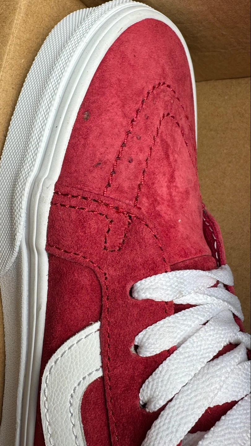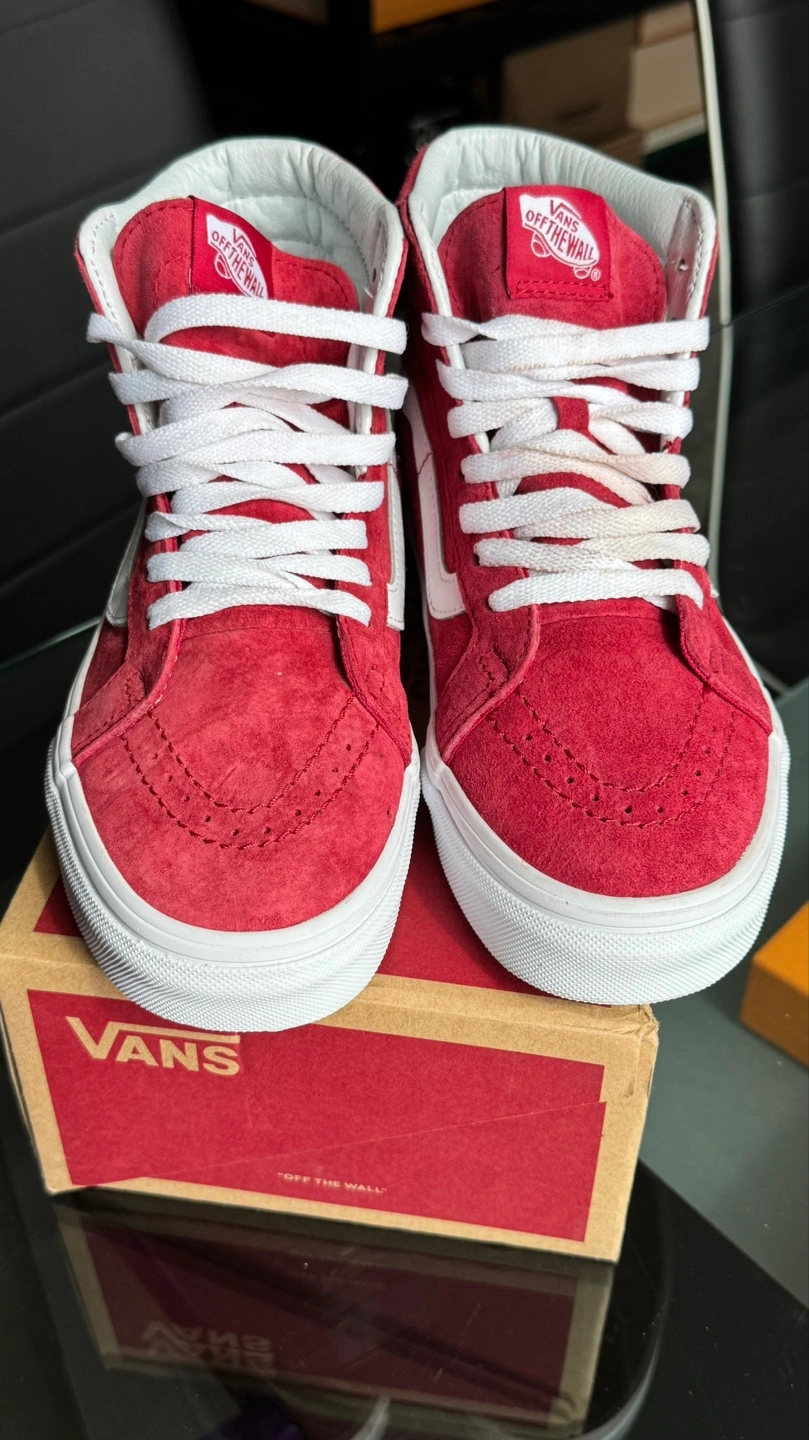 Red suede Vans Sk8-Hi high-top sneakers. Women's size 7.5 White laces and side stripe. Lightly used 8/10.Price is firm