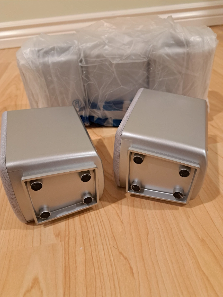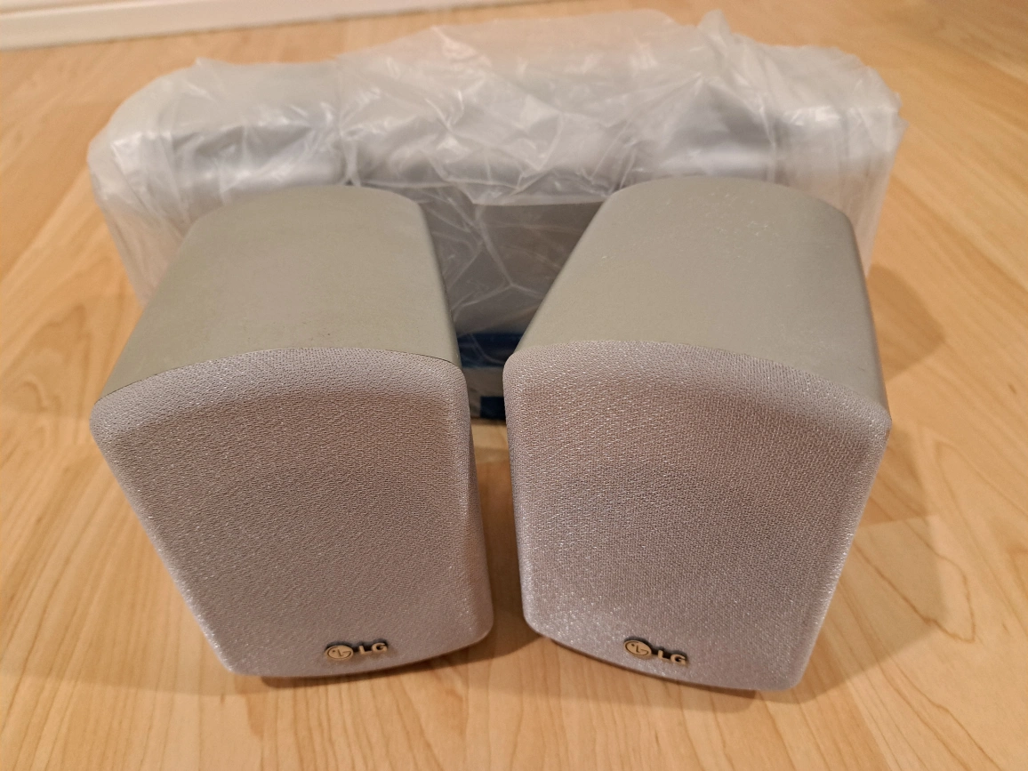 Pair of LG LHS-D6246T speakers. New in box. Silver finish. Includes speaker wire connectors.