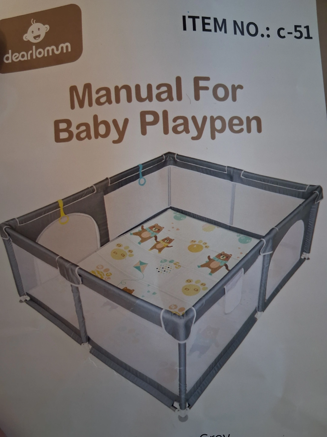 Manual for Dearmom baby playpen. Item number C-51. Grey. Includes instructions.