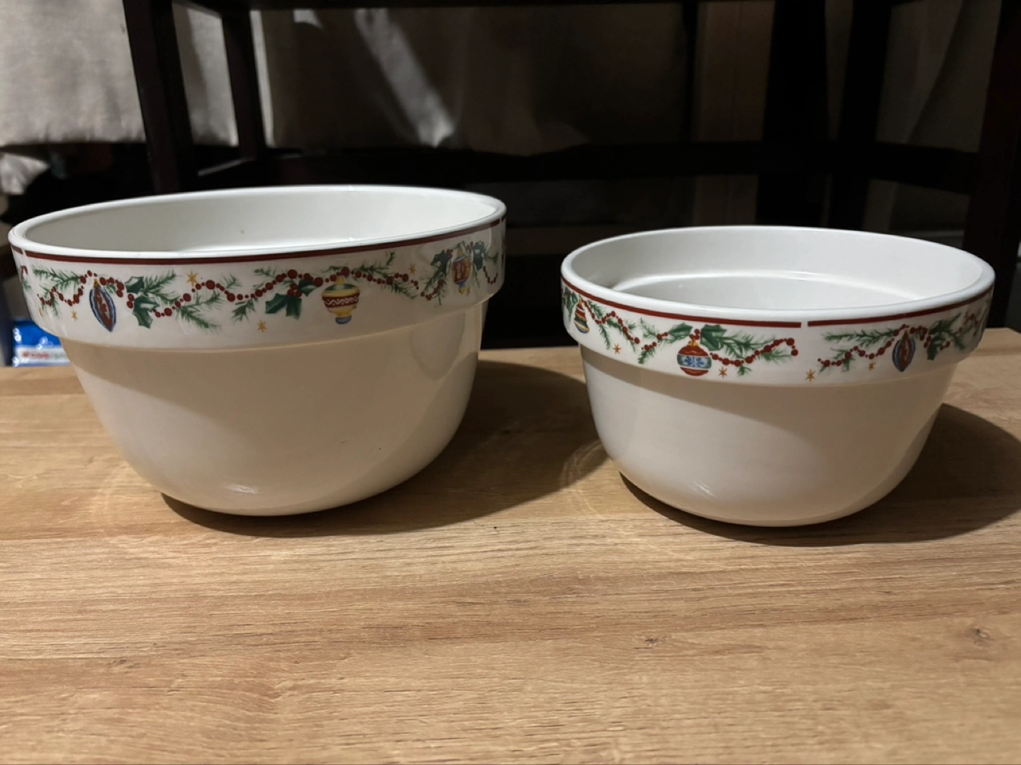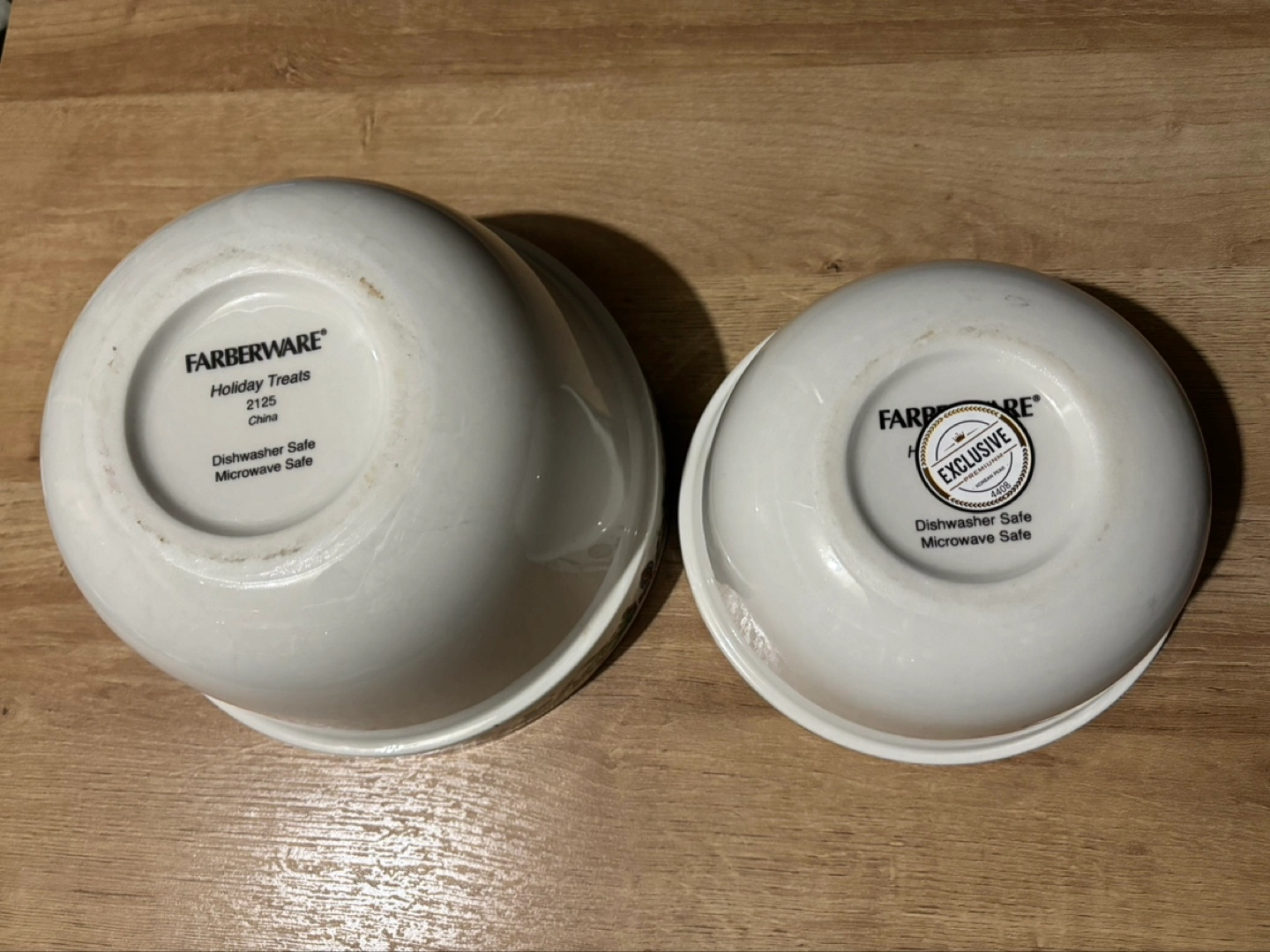 91Set of two Farberware Holiday Treats bowls. Microwave and dishwasher safe. Christmas design. Ceramic.