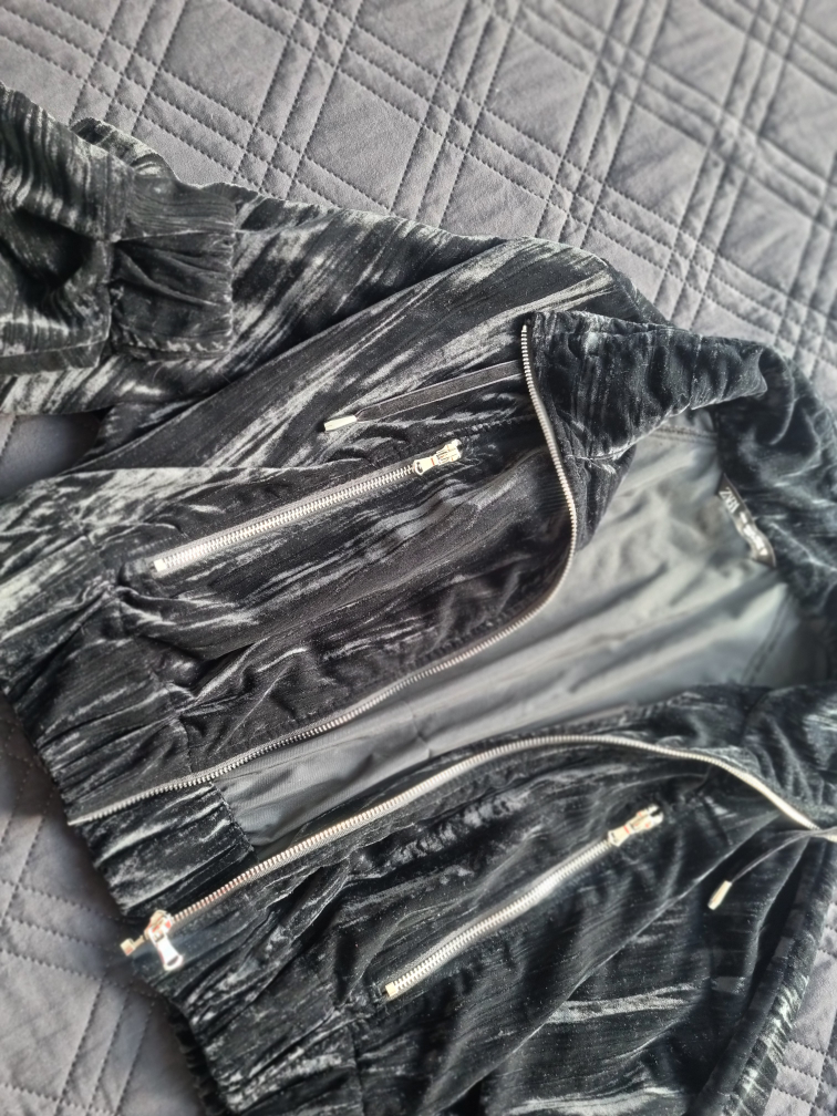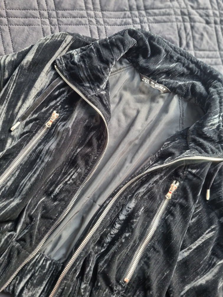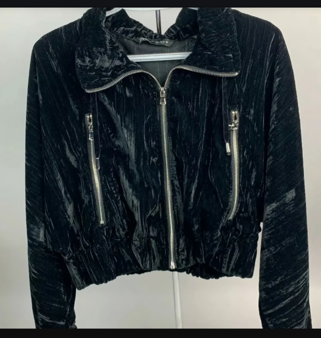 Buy & SellZara Black Velvet JacketZara Black Velvet Jacket$10Black velvet cropped zip-up jacket. Silver zippers. Long sleeves. Excellent condition. Never used.ConditionNewSizeXSWHERE TO MEETCheck LocationView MapSELLERKkkkkkkkkkS Parkdale13212 reviews0 chats·0 favorites·29 viewsSEND CHAT TO SELLERHi Kkkkkkkkkk! I’m interested in your listing.Hi Kkkkkkkkkk! I’m interested in your listing.Get the Karrot app to chatSign In to chat