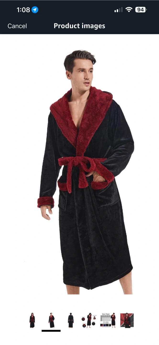 Buy & SellMen's Black Plush Robe with Burgundy TrimMen's Black Plush Robe with Burgundy Trim$15This men's plush robe is black with cozy burgundy trim. It features a tie closure and two front pockets. Soft, warm material for comfort.ConditionLike newSizeMediumWHERE TO MEETCheck LocationView MapSELLERverifiedAyushOld Toronto1366 reviews3 chats·0 favorites·36 viewsSEND CHAT TO SELLERHi Ayush! I’m interested in your listing.Hi Ayush! I’m interested in your listing.Get the Karrot app to chatSign In to chat