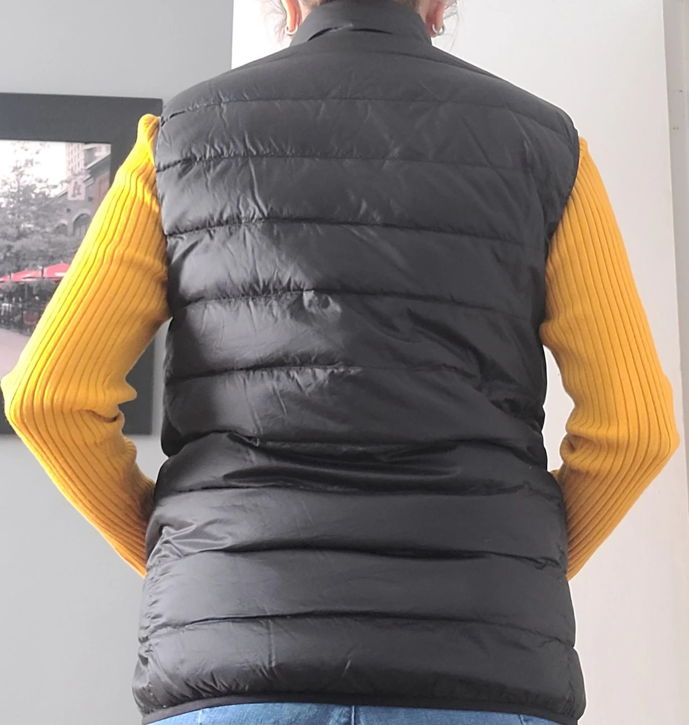 Selling a Uniqlo Ultra Light Down Vest in black, size small. It's lightweight and portable, perfect for layering! The vest is in great condition and ready for a new owner.