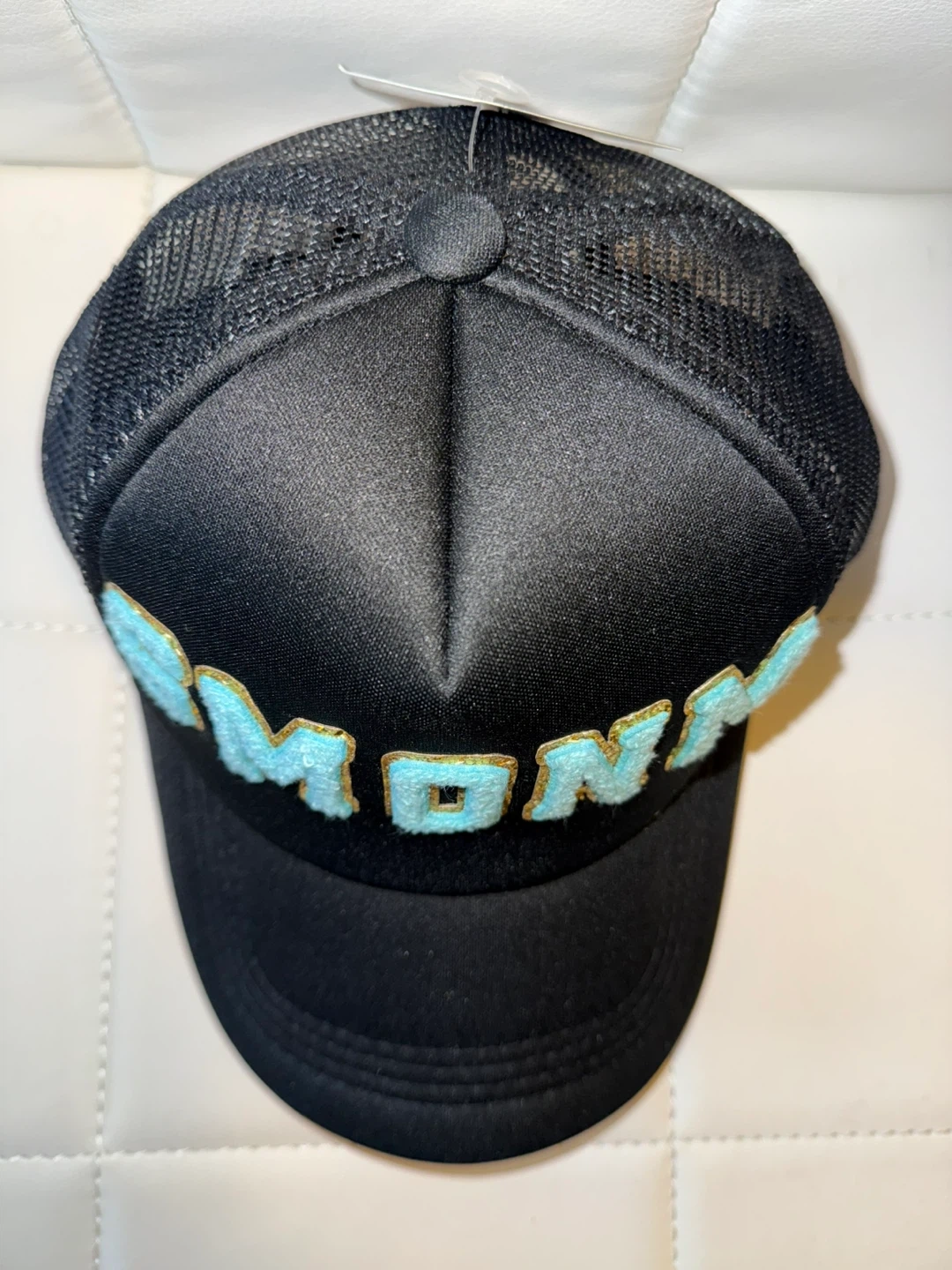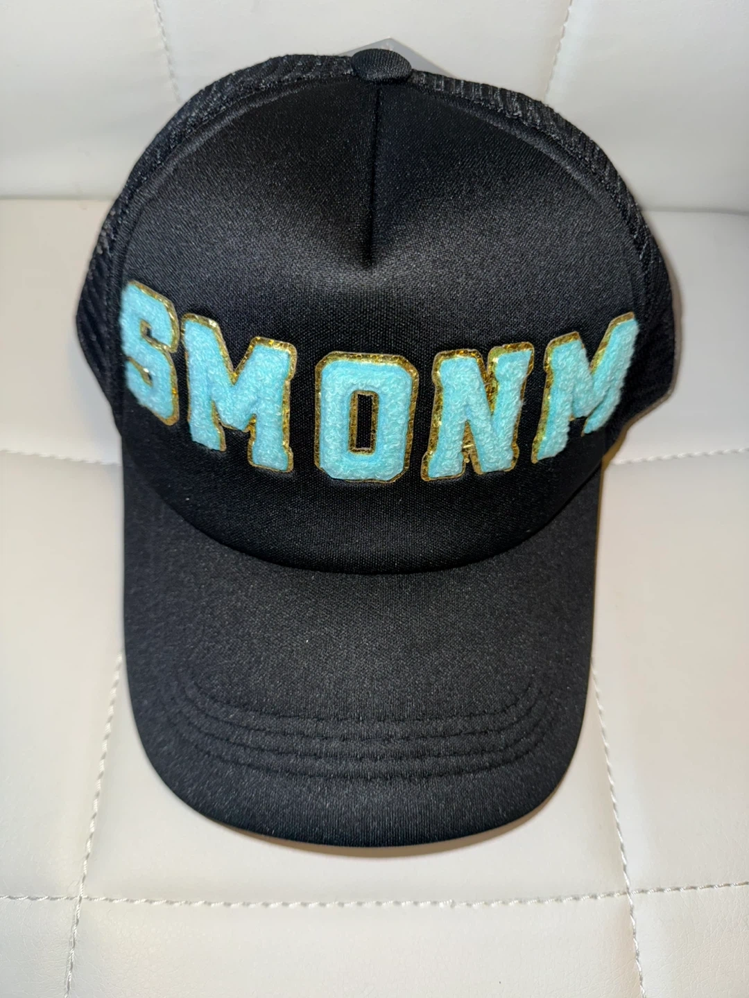 Hats are brand new, custom made. Features Sherpa fabric logo promoting relaxation and gold halo outline.