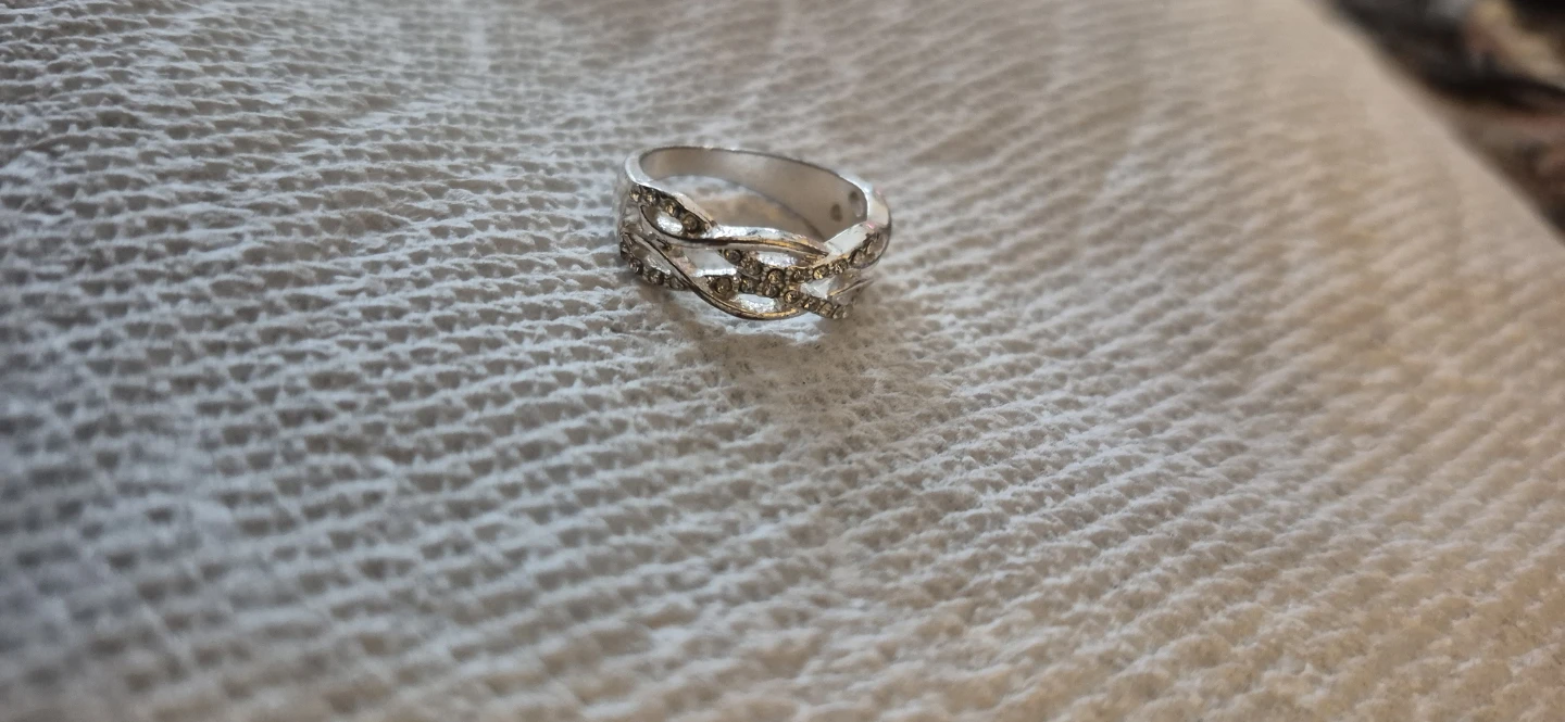 This ring has a beautiful intertwined design with sparkling stones. It's a lovely piece of jewellery for everyday wear or special occasions.