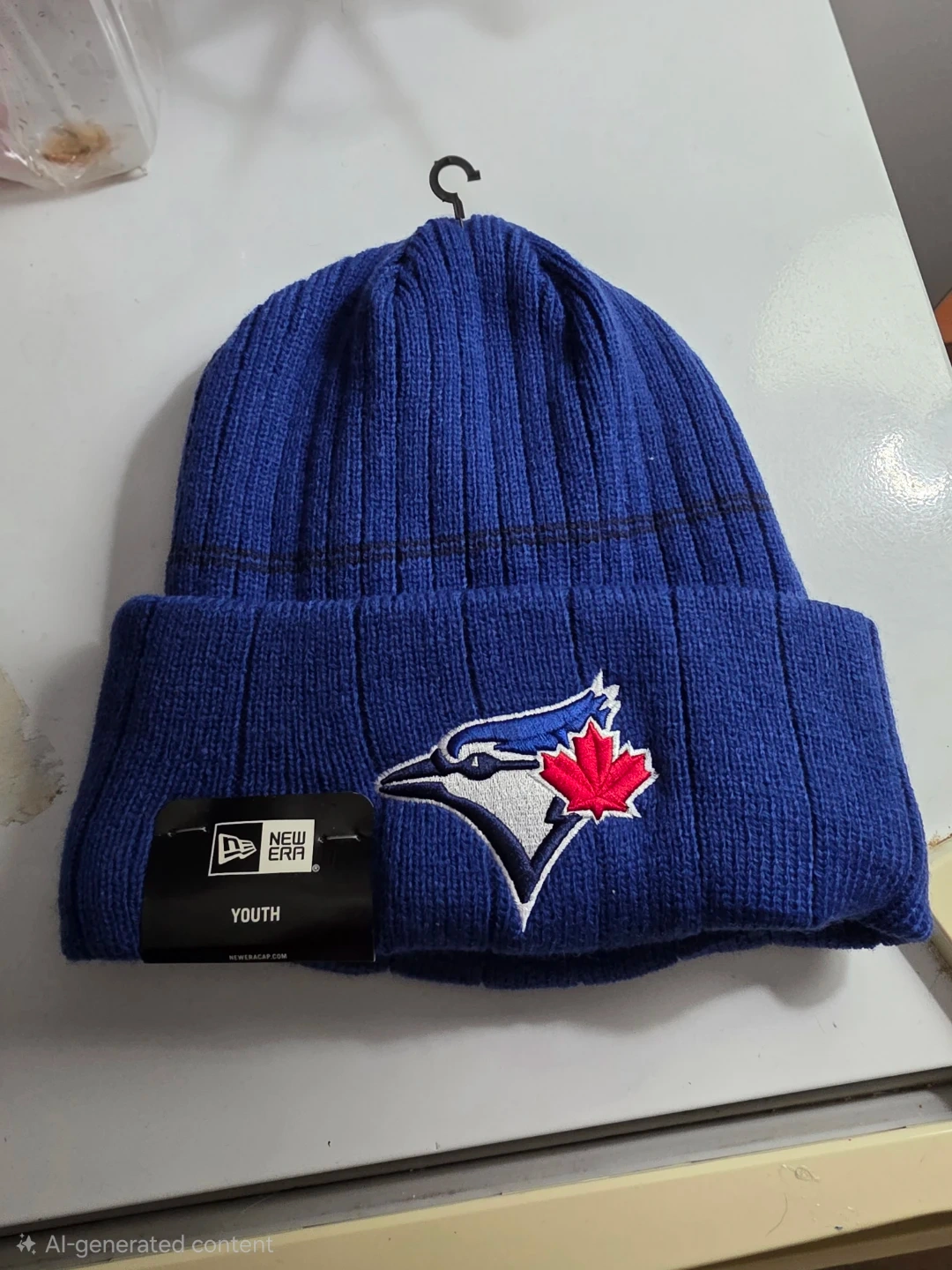 This New Era beanie is sized for youth and features the Toronto Blue Jays logo and "Blue Jays" text. It's made with a ribbed knit and has an interior lining for comfort. Perfect for keeping warm while cheering on your favourite team!