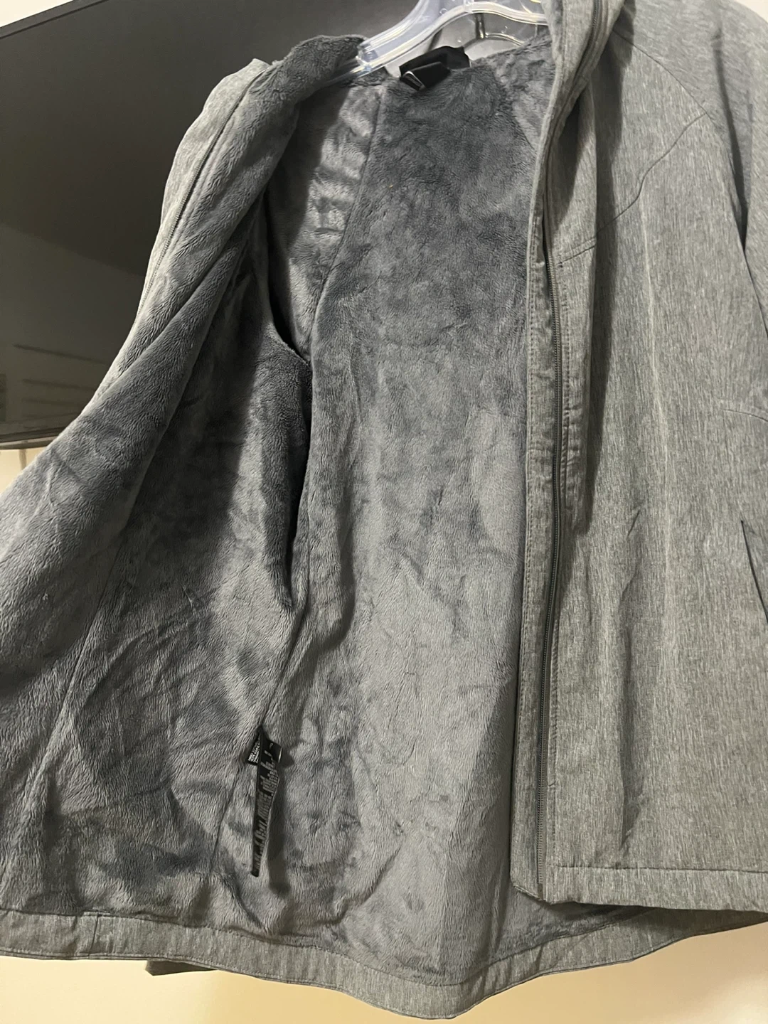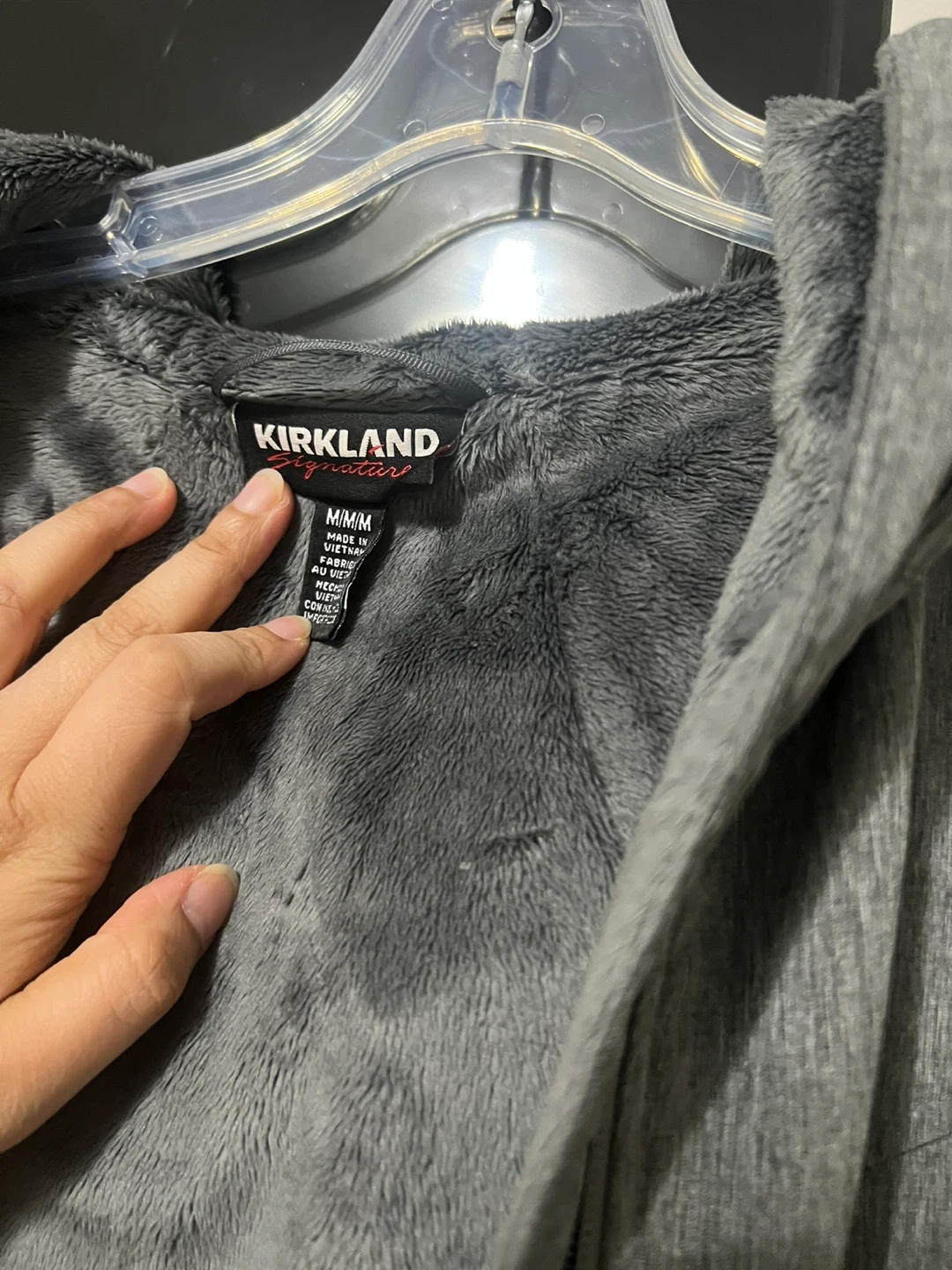 Selling a Kirkland Signature jacket in size medium. It's a lovely grey colour and has a soft, cozy lining. Perfect for cooler weather!