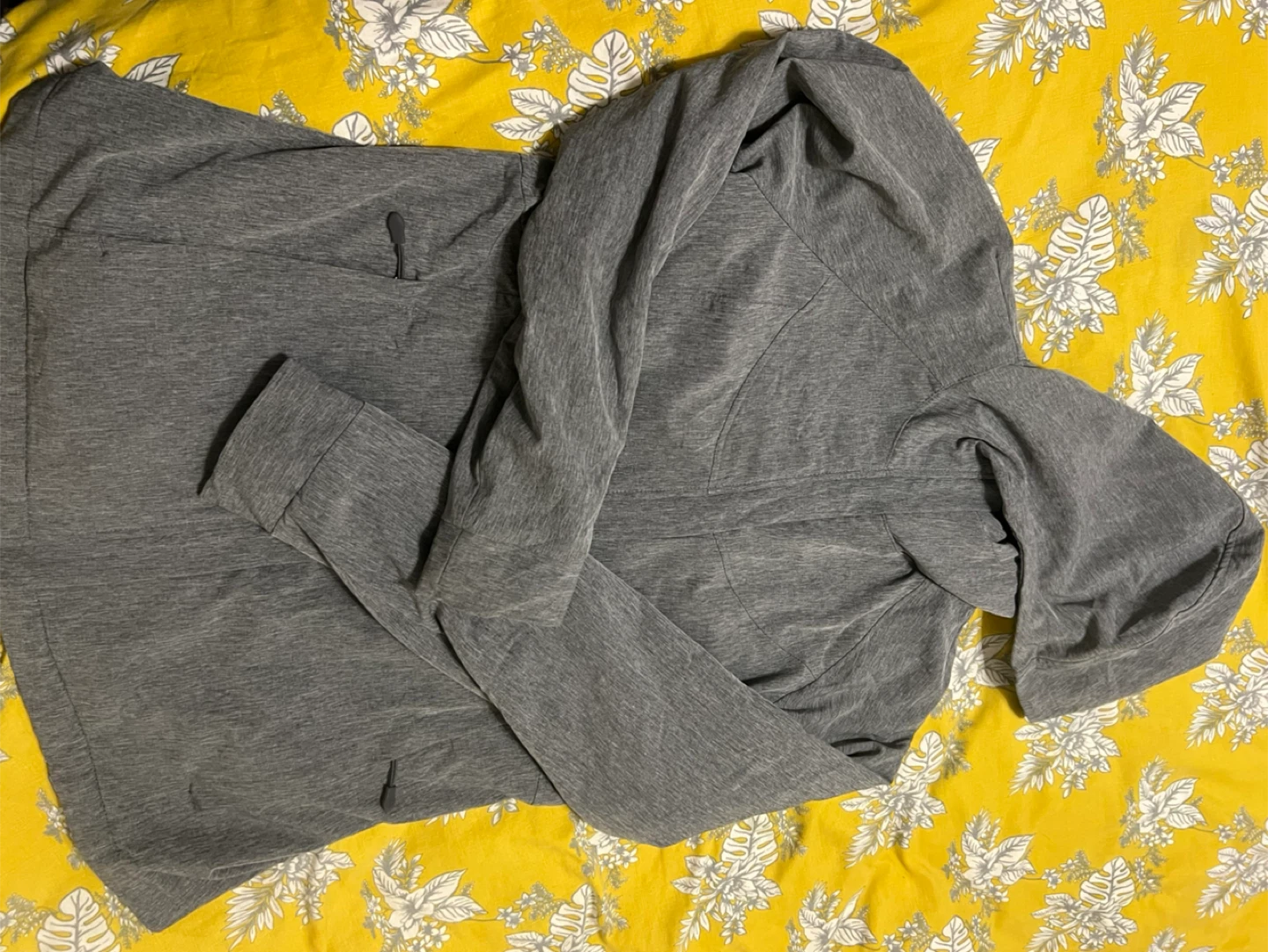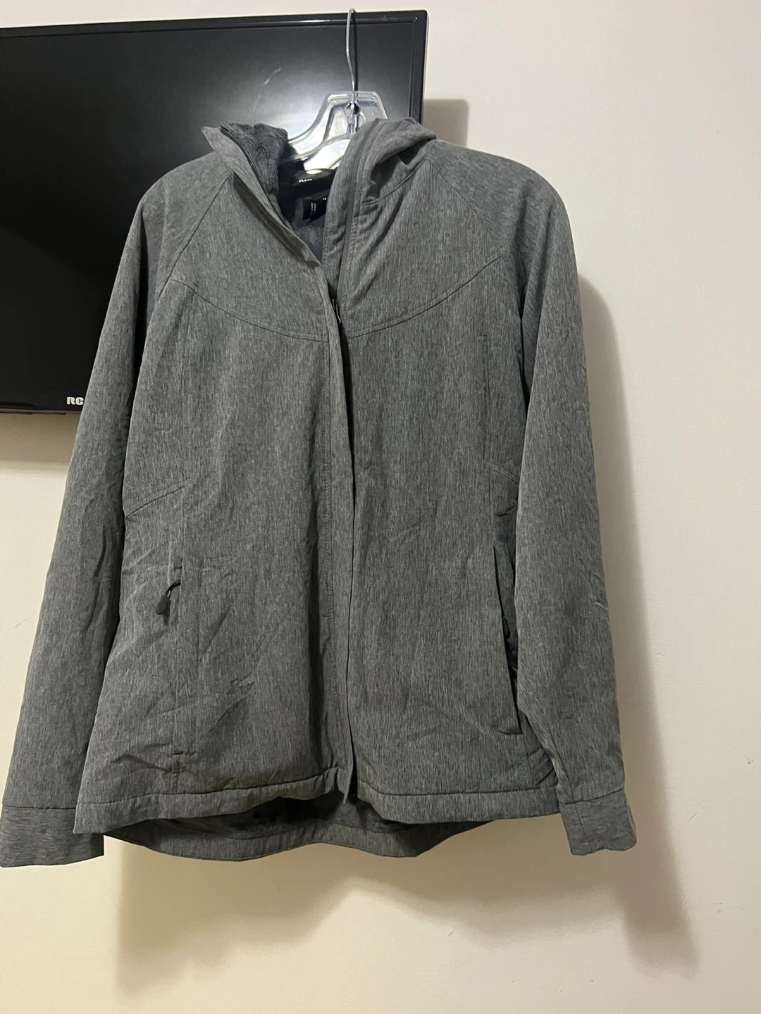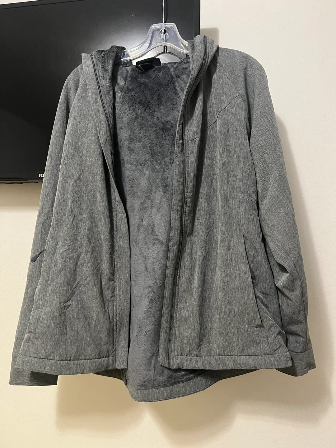 Selling a Kirkland Signature jacket in size medium. It's a lovely grey colour and has a soft, cozy lining. Perfect for cooler weather!