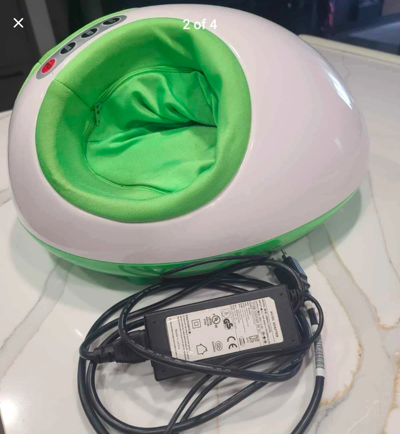 I'm selling an Iknadu Foot Master foot massager in great condition. It comes with the power adapter. It has heat, intensity, and mode settings for a relaxing massage. The dimensions are approximately 30cm x 32cm x 21cm.