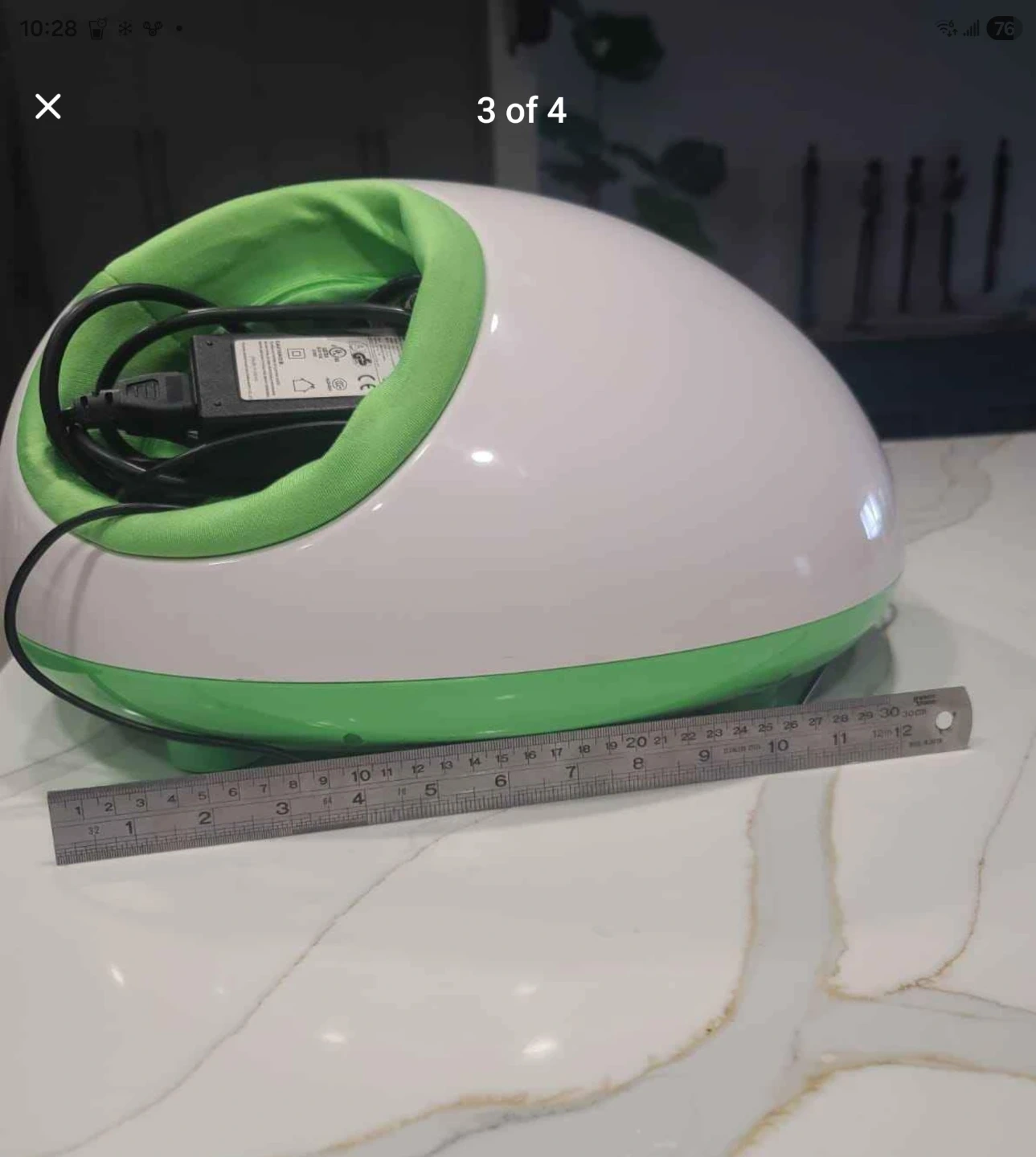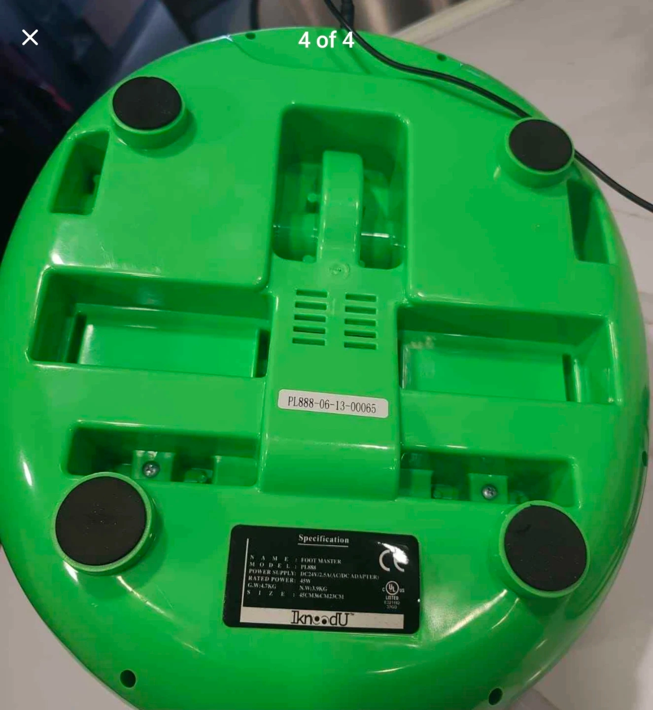 I'm selling an Iknadu Foot Master foot massager in great condition. It comes with the power adapter. It has heat, intensity, and mode settings for a relaxing massage. The dimensions are approximately 30cm x 32cm x 21cm.