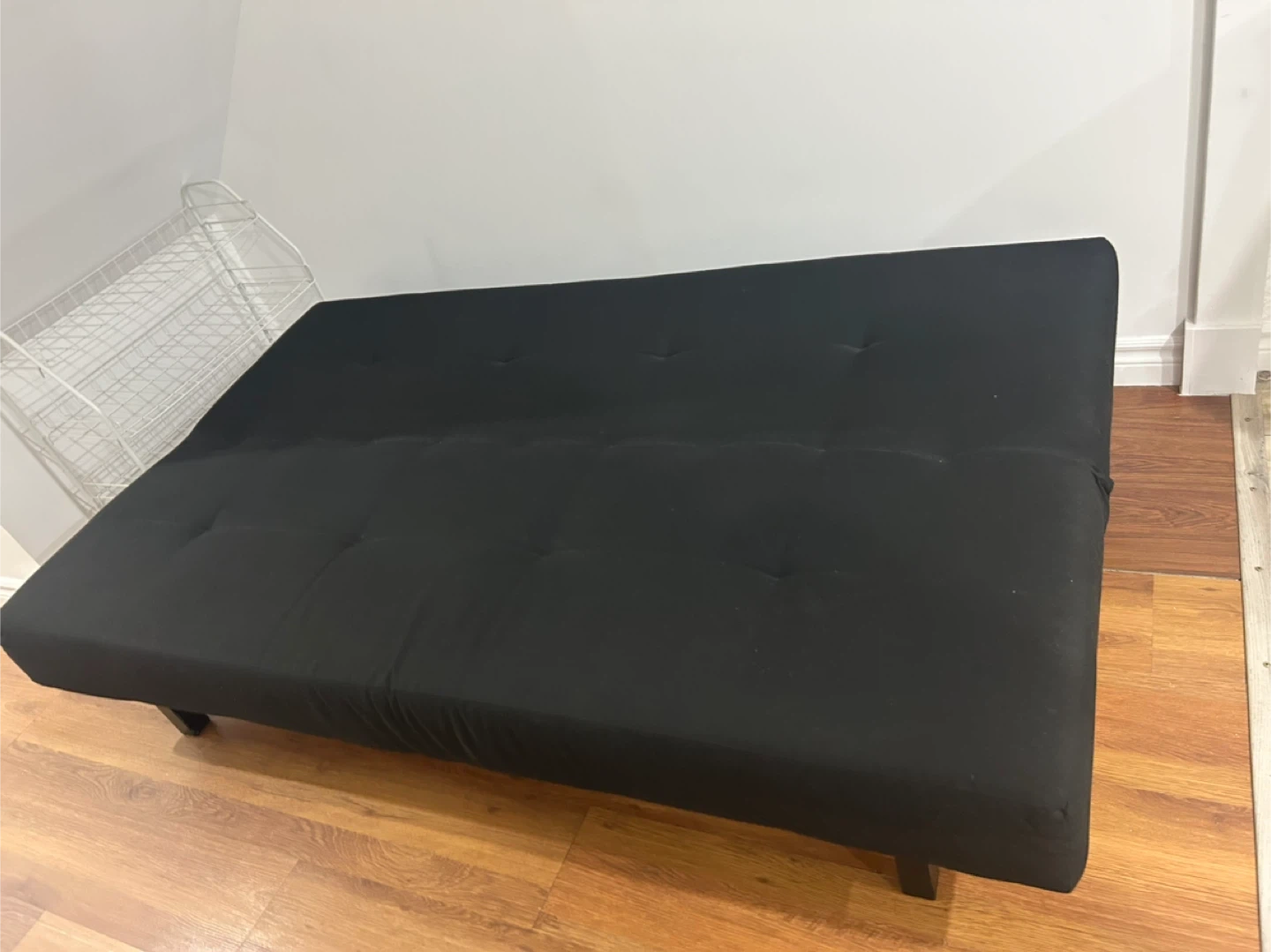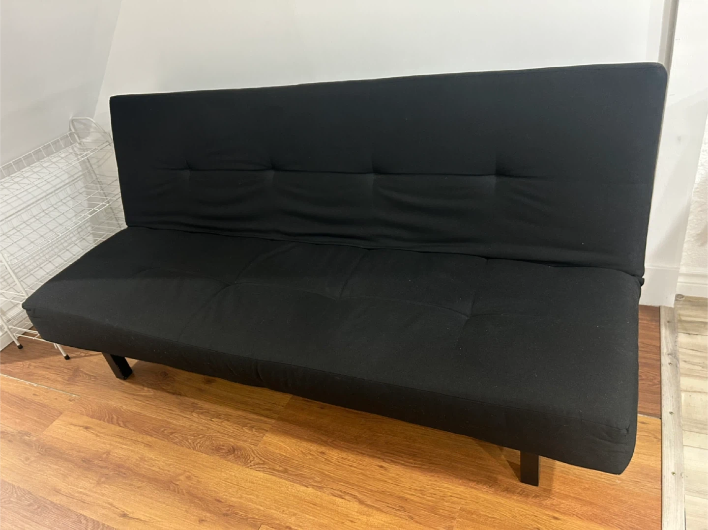 Selling a black futon sofa bed. It's in great condition and would be perfect for a living room or spare room. It can easily be converted from a sofa to a bed. It's a comfortable and practical piece of furniture! good as new. no stains, no damages, no bugs. just used for couple of months.
