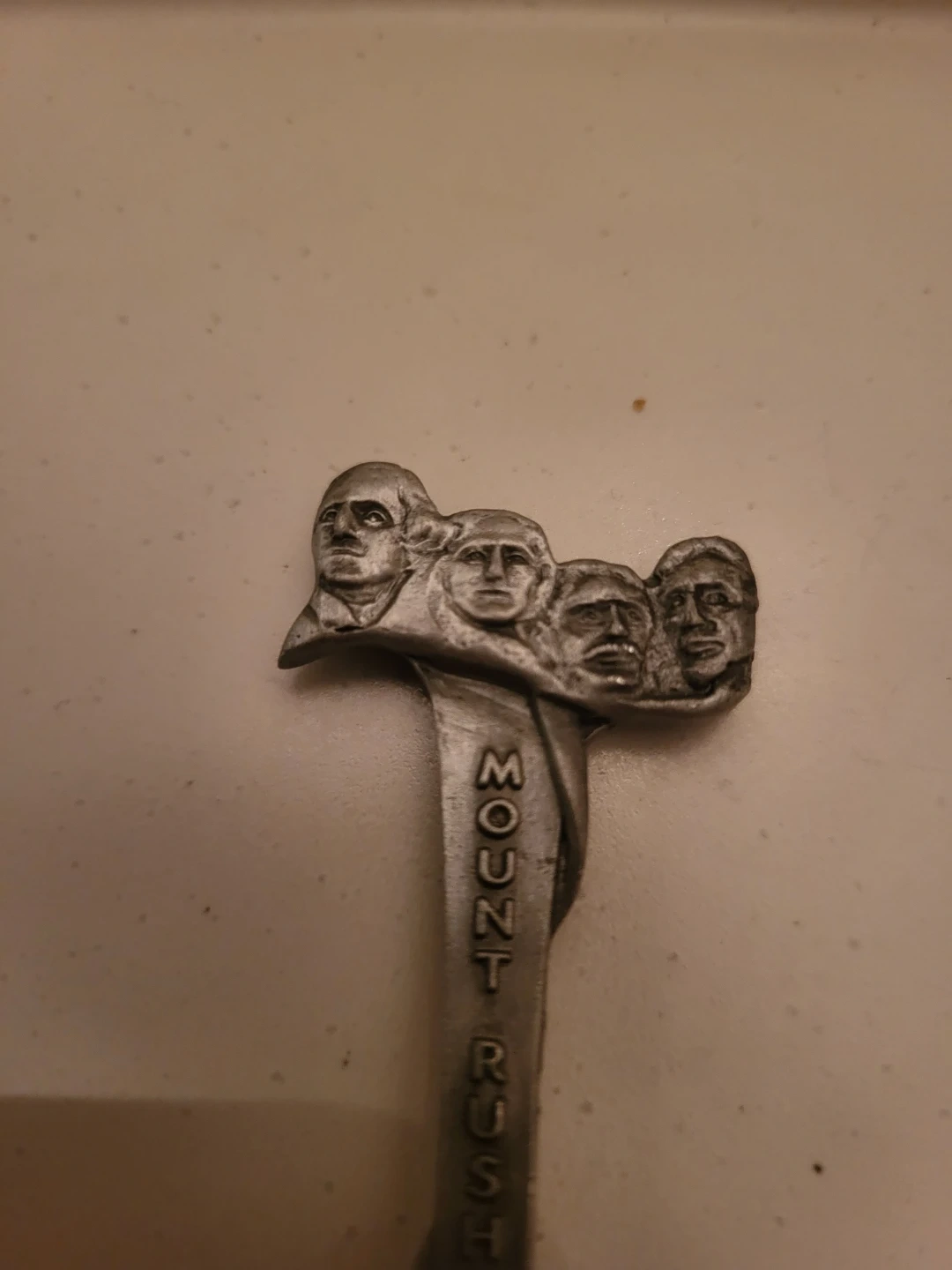 Mount Rushmore Pewter Souvenir Spoon with Bison Design