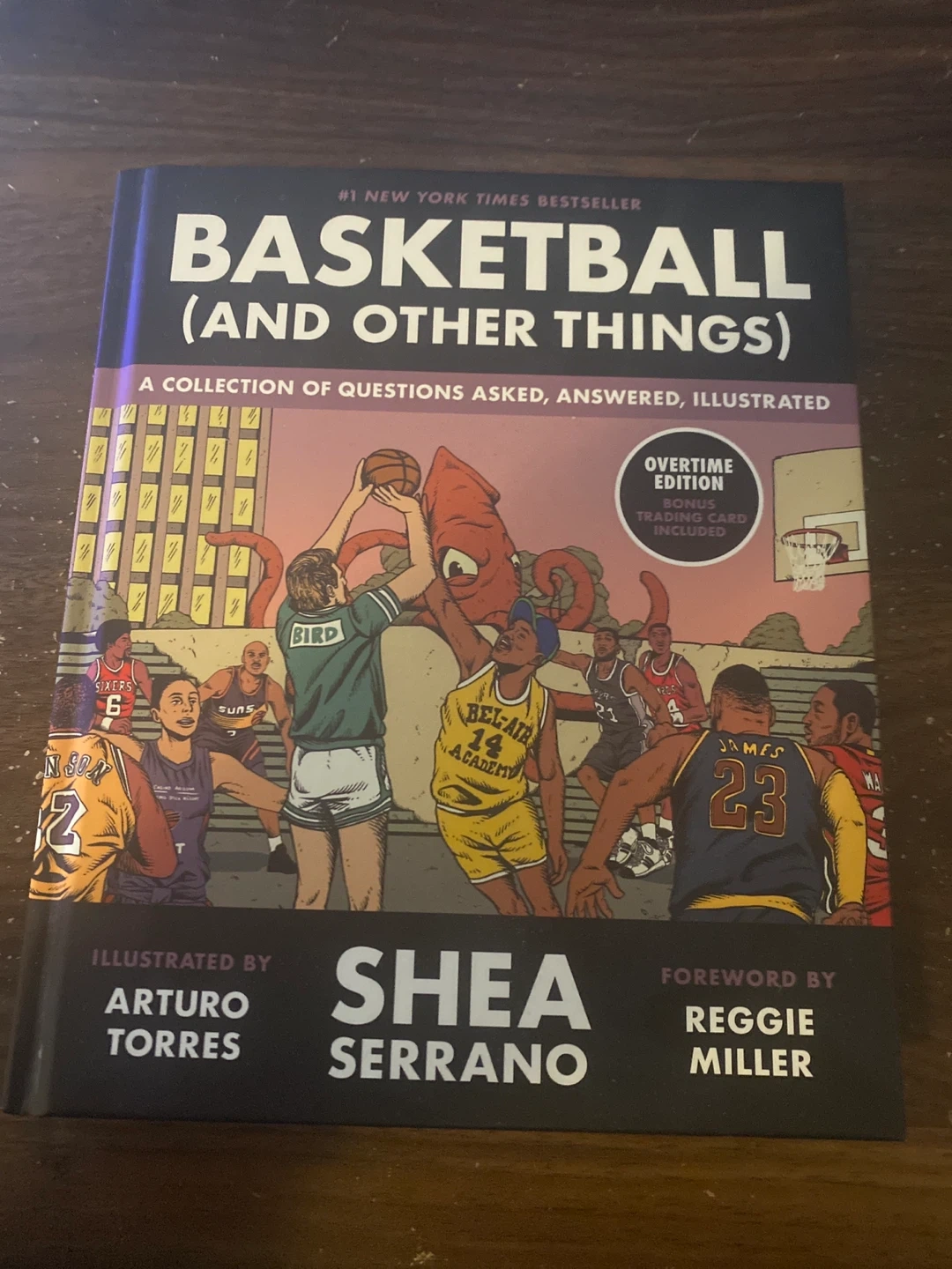 Selling a copy of "Basketball (and Other Things)" by Shea Serrano. It's the Overtime Edition, so it includes a bonus trading card! It's a #1 New York Times Bestseller, a collection of questions asked, answered, and illustrated. Illustrated by Arturo Torres, with a foreword by Reggie Miller