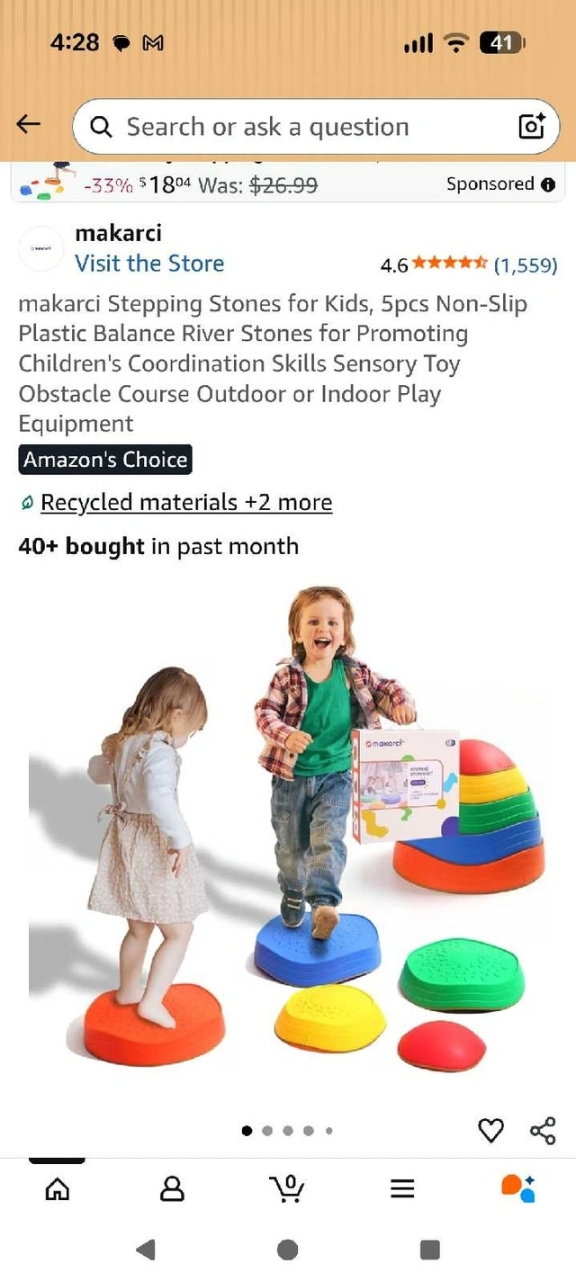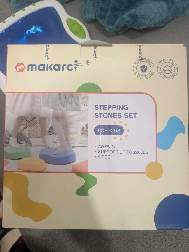 Make playtime an adventure with this Makarci Stepping Stones set for kids! It features 5 colorful, non-slip plastic balance stones designed to promote coordination skills. Suitable for both indoor and outdoor obstacle courses, these stones support up to 220lbs and are perfect for children aged 3+. These stones are in excellent used condition, ready for a new home!