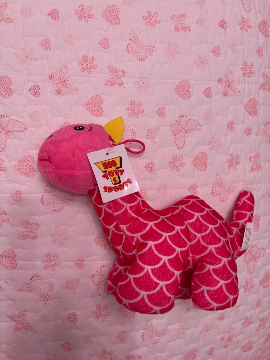 Selling a cute Big Toys dino plush! It's pink and white with a friendly face. Perfect for kids or collectors!