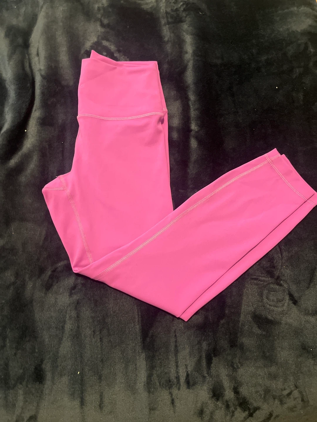 Comfortable pink athletic leggings with a high waistband. Material is soft and stretchy. These are great for workouts or casual wear!