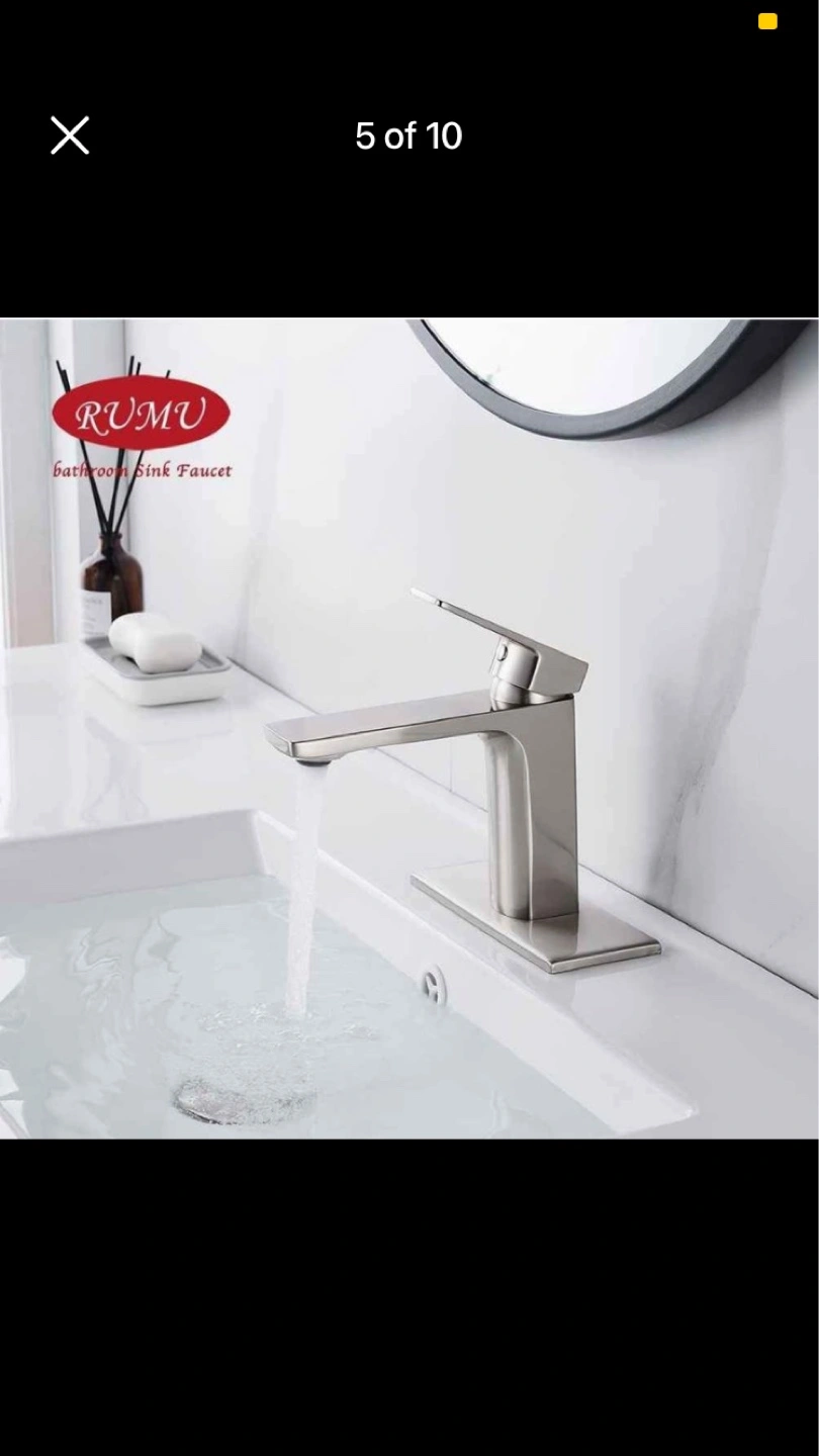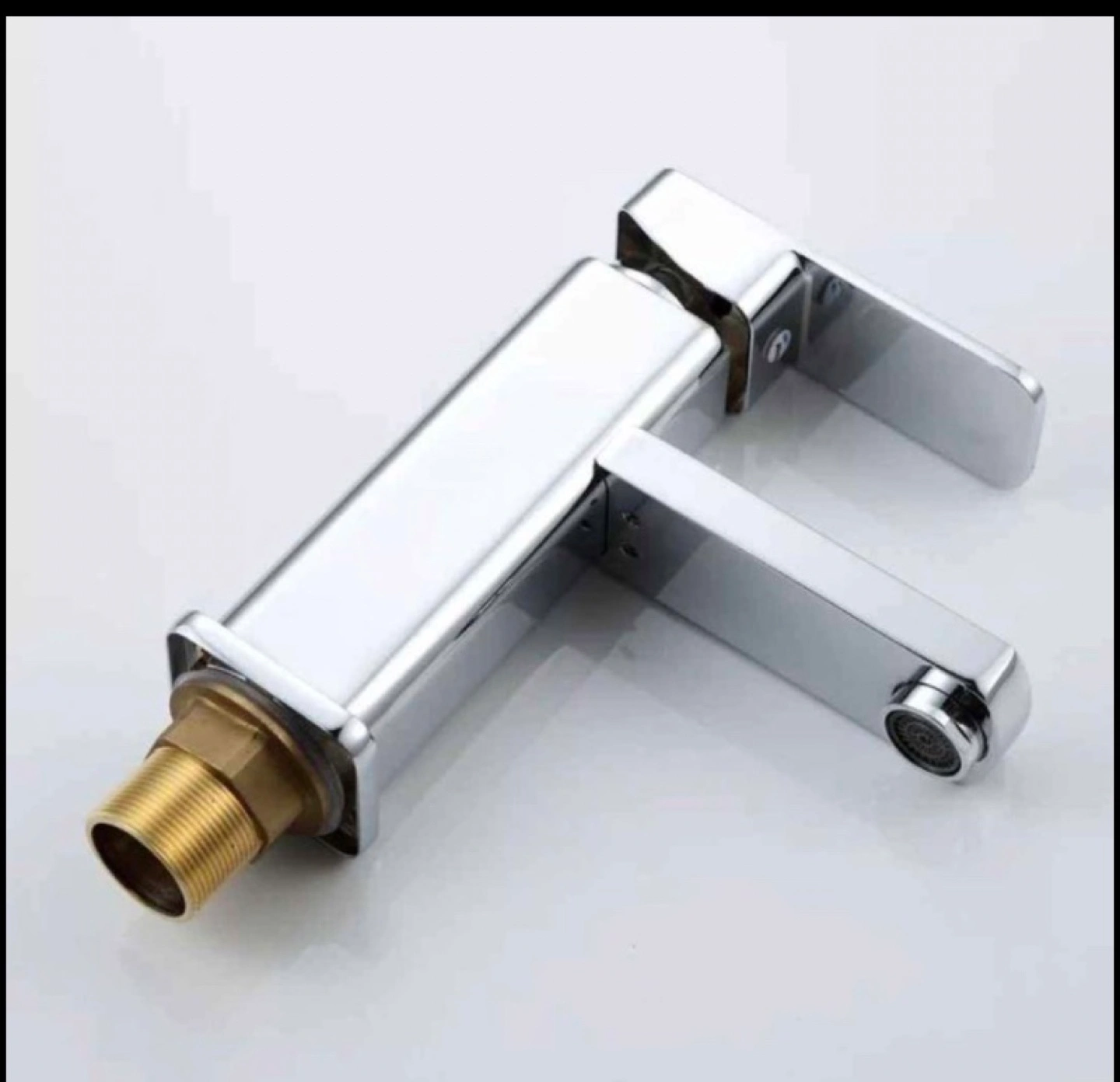 Modern brushed nickel finish bathroom sink faucet. Includes mounting hardware. Single handle design. Square base. NEW in a Box
