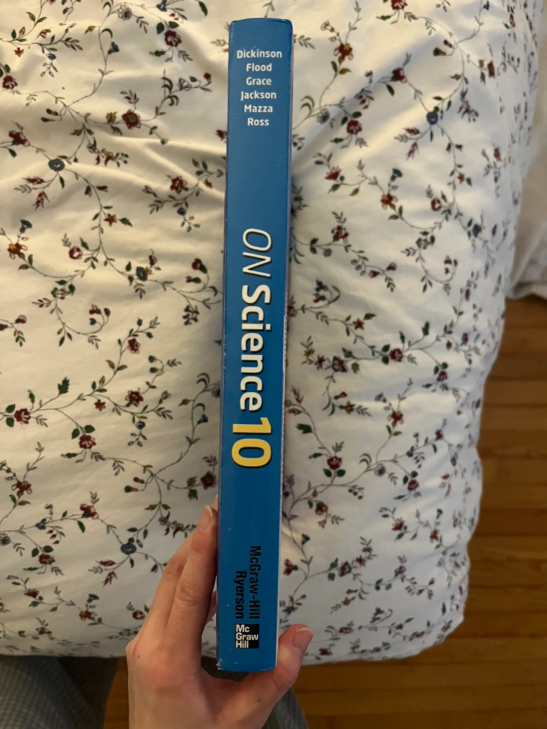 Grade 10 science textbook. Excellent condition. Authors include Dickinson, Flood, Grace, Jackson, Mazza, and Ross. Publisher: McGraw-Hill Ryerson.