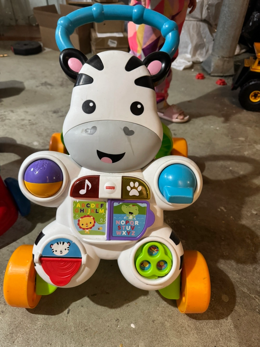 Interactive baby walker. Features lights, sounds, and buttons. Great for learning the alphabet and numbers. Wheels roll smoothly.
