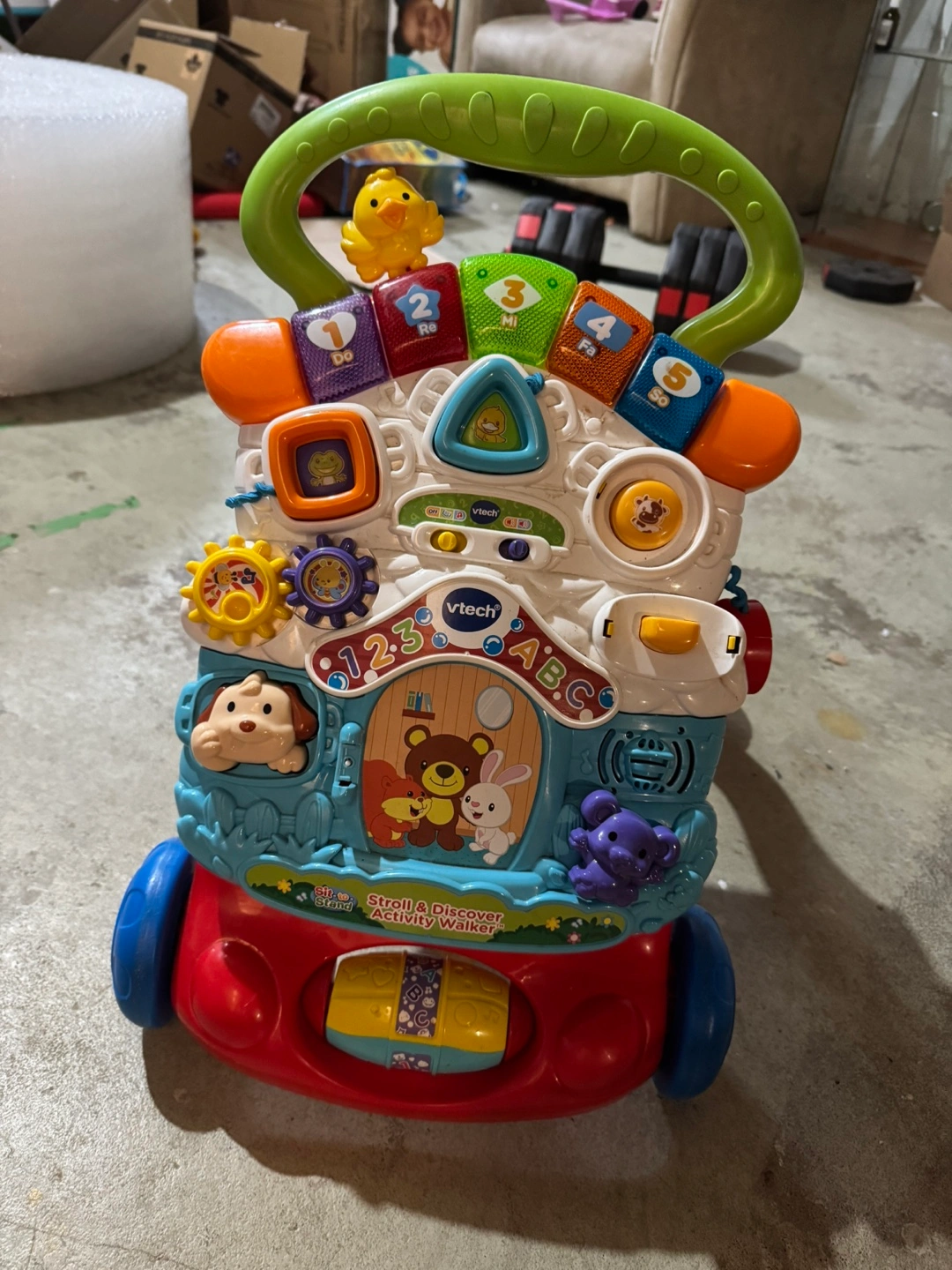 Interactive baby walker. Features lights, sounds, and multiple activities. Great for learning and development. Suitable for babies who are learning to walk.