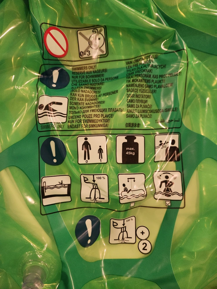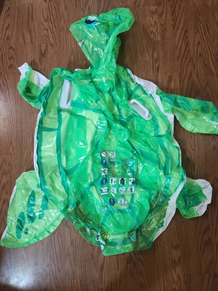 195Fun summer pool float. Green turtle design. Features handles. For swimmers only. Maximum weight 45kg.