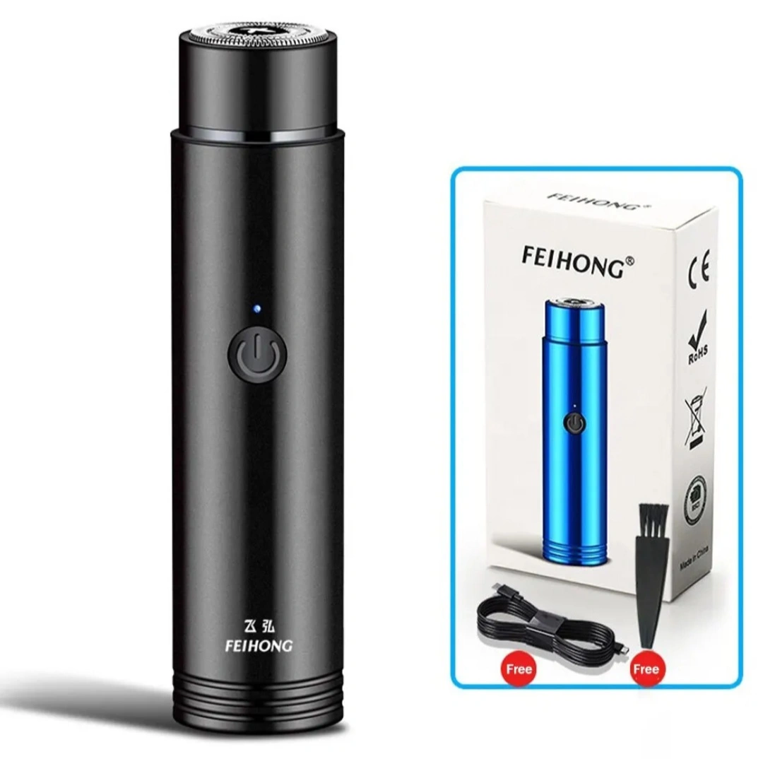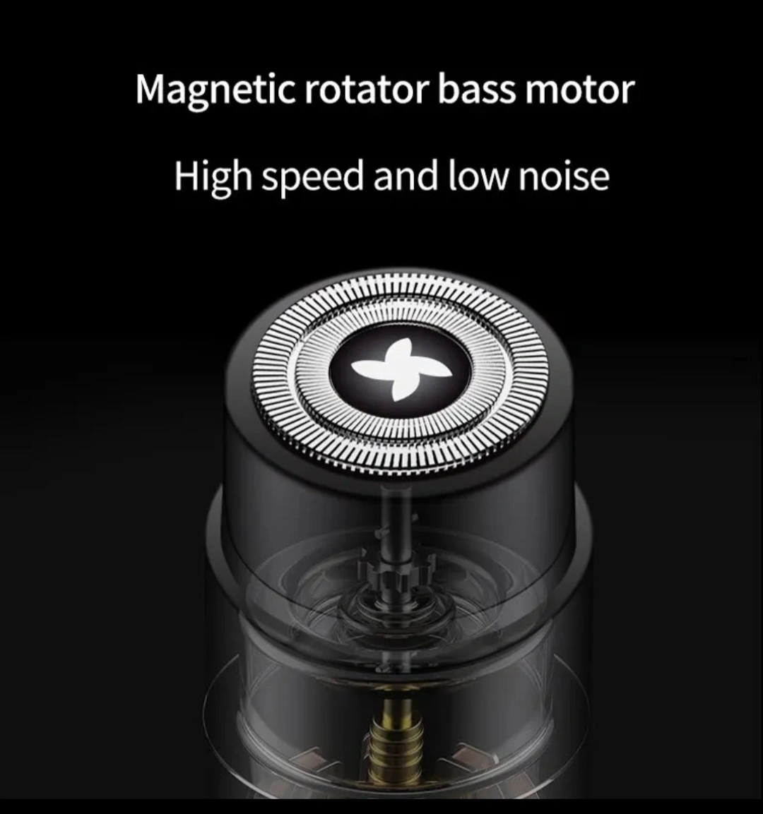 Cordless and rechargeable. Compact design, perfect for travel. Features a magnetic rotator bass motor for high speed and low noise. Turbine rotating blade with 360-degree rotation. Includes cleaning brush and USB charging cable.