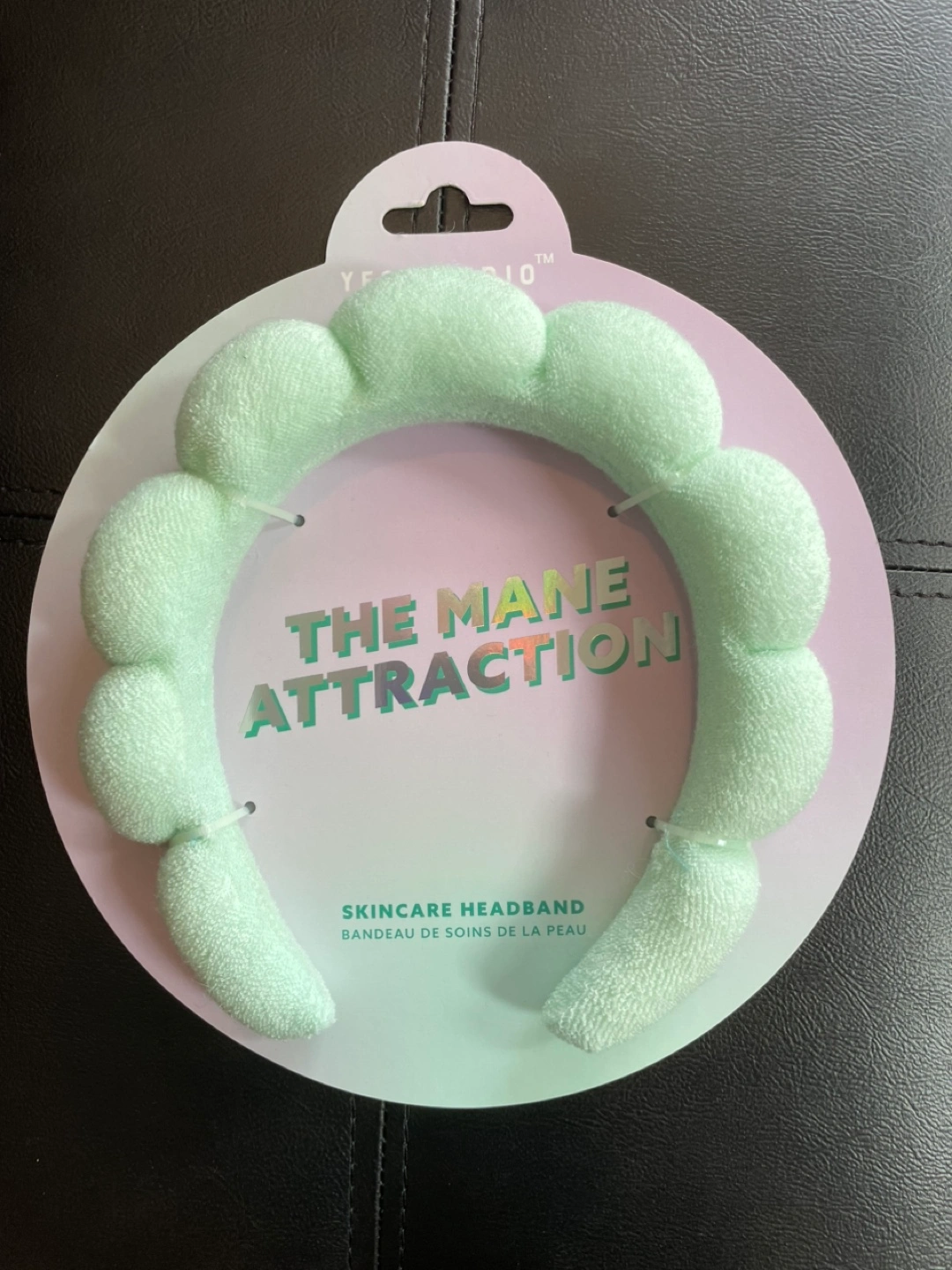New, mint green, soft fabric headband. Keeps hair out of your face while doing skincare or makeup. Hand wash only, air dry.