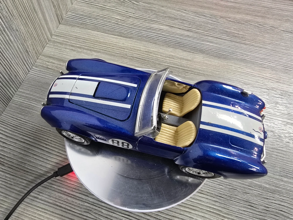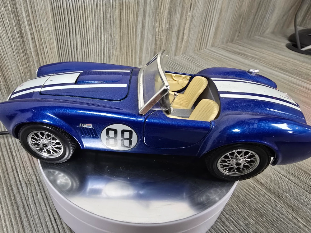 Blue Shelby Cobra 427 diecast model. Number 88. Detailed interior. Great for collectors or enthusiasts.