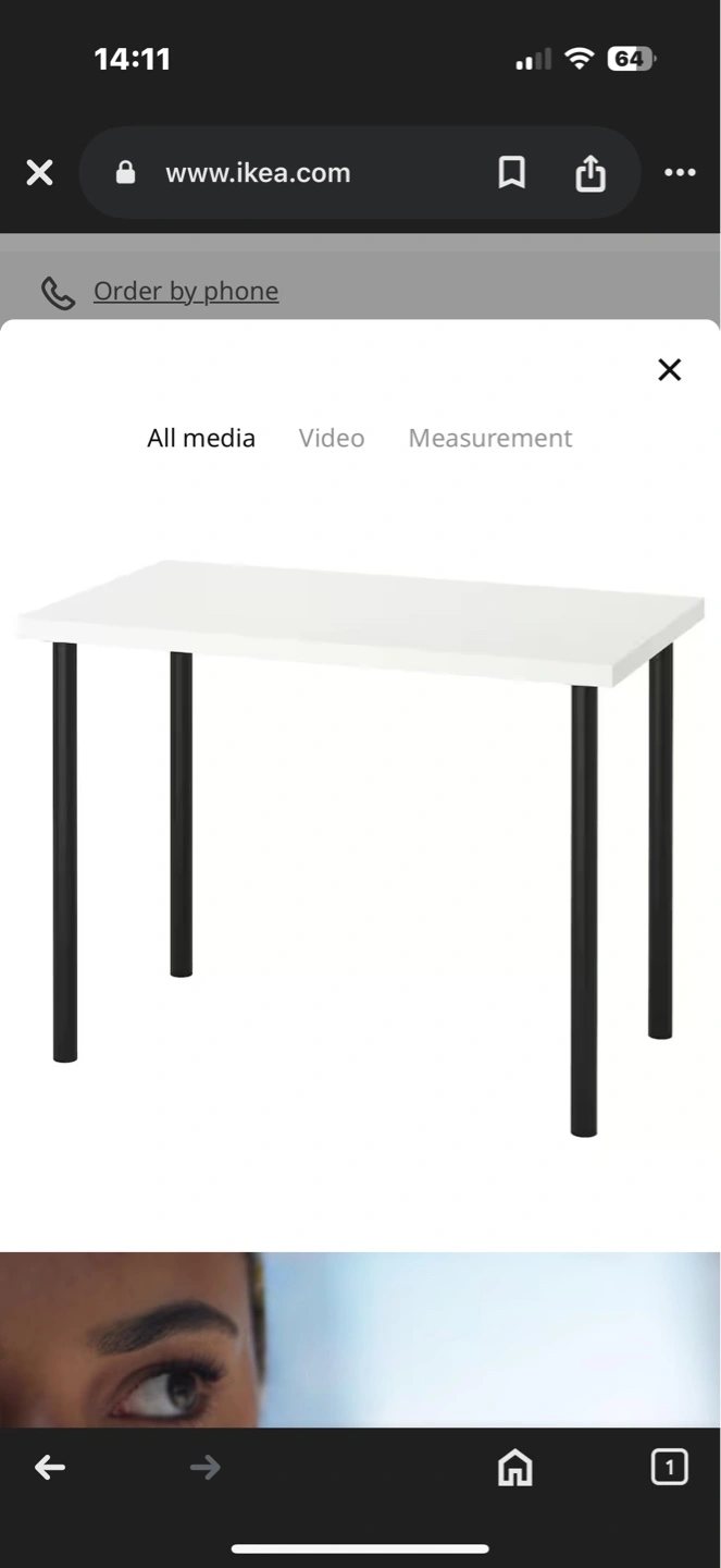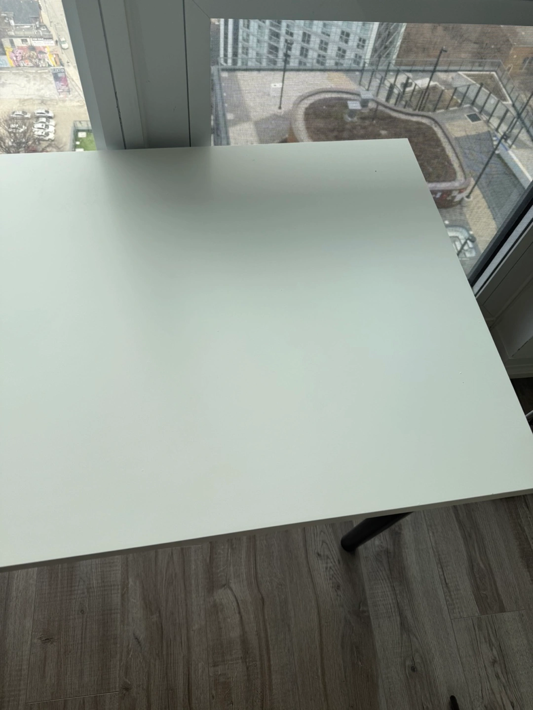 Minimalist and sturdy IKEA LINNMON/ADILS desk with a white tabletop and black legs.