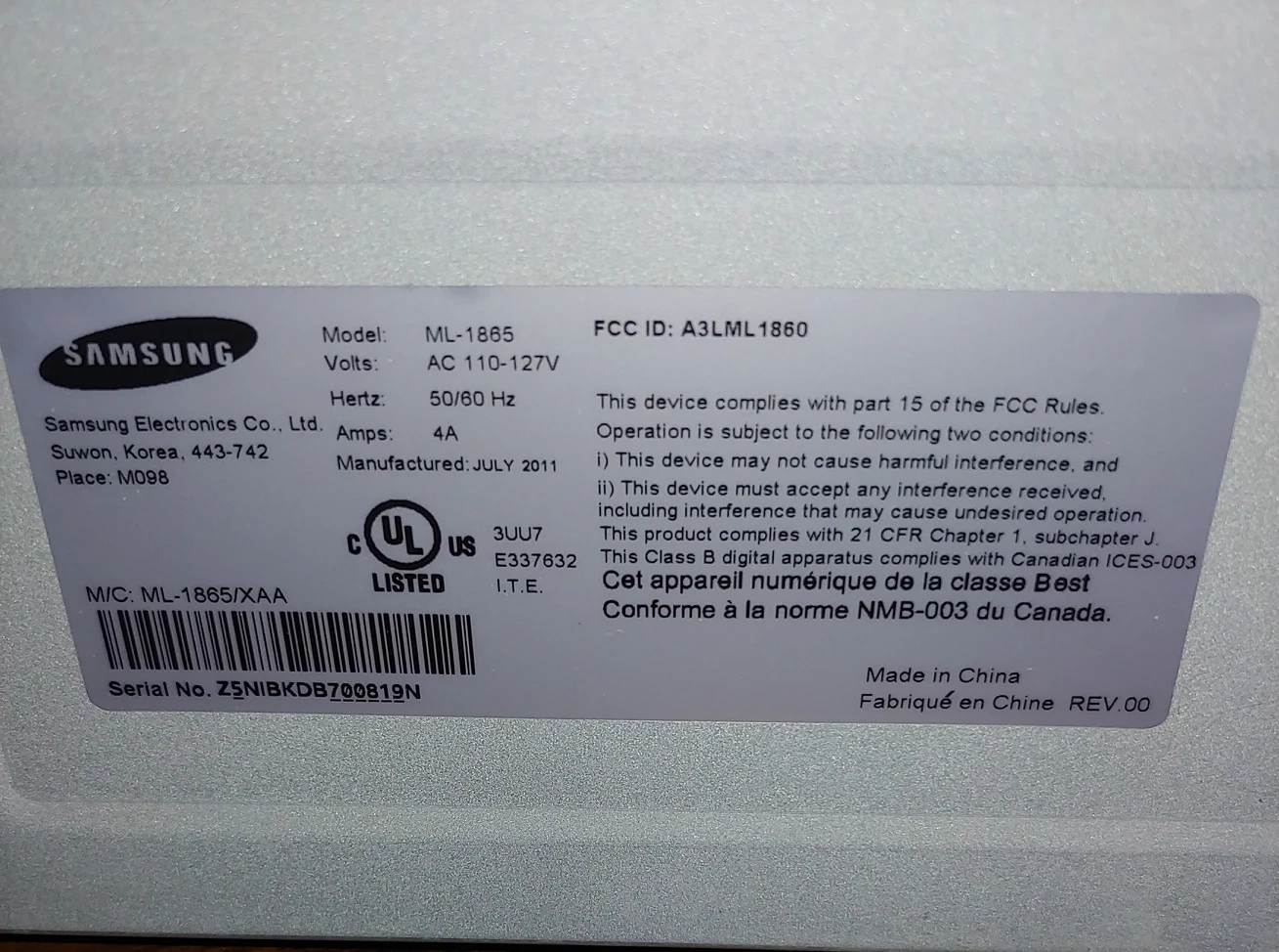 Samsung monochrome laserjet printer