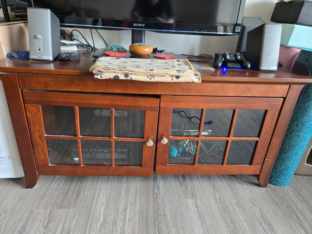 Buy & SellDark Wood Media Console with Glass DoorsDark Wood Media Console with Glass Doors$60Solid wood media console. Two glass paneled doors. Plenty of storage space. Some minor wear and tear. Solid wood. Pick up around bank and heronConditionGoodWHERE TO MEETLunenView MapSELLERverifiedAshleyHeron Gate761 review0 chats·0 favorites·23 views