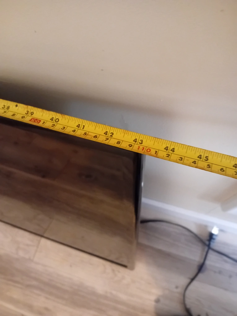 43 inch Samsung Smart TV. Screen has 5 lighter dots and white line at top (as shown in picture), no stands, power button is hard to use, includes power cord