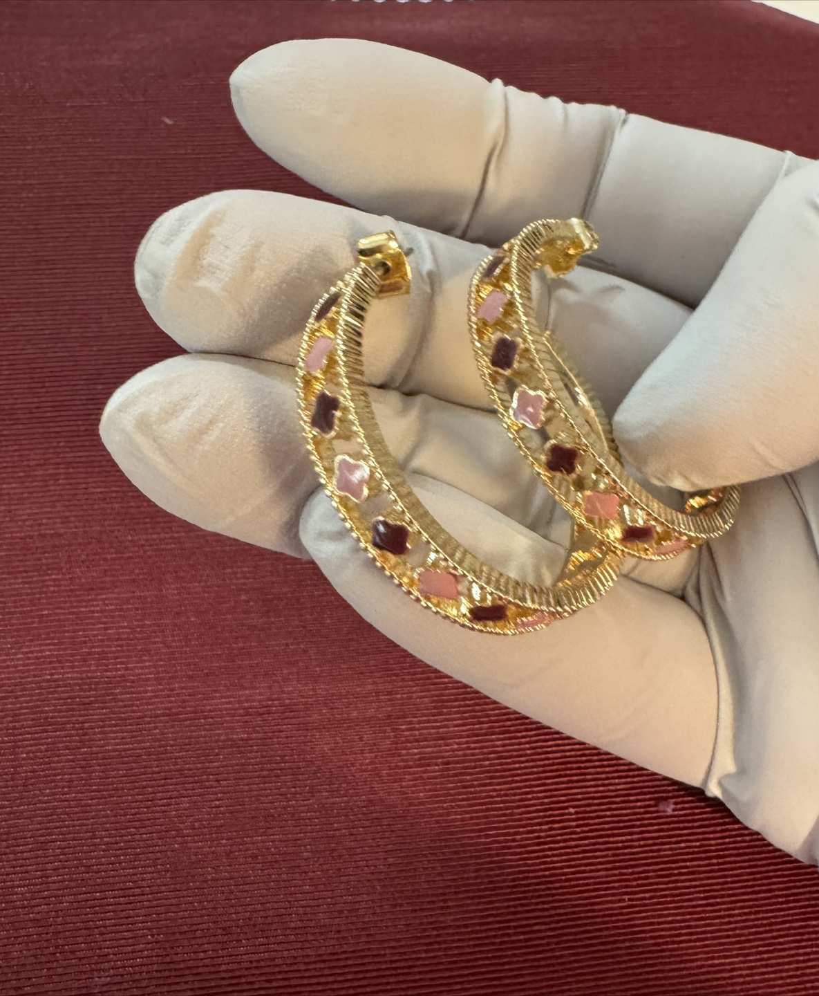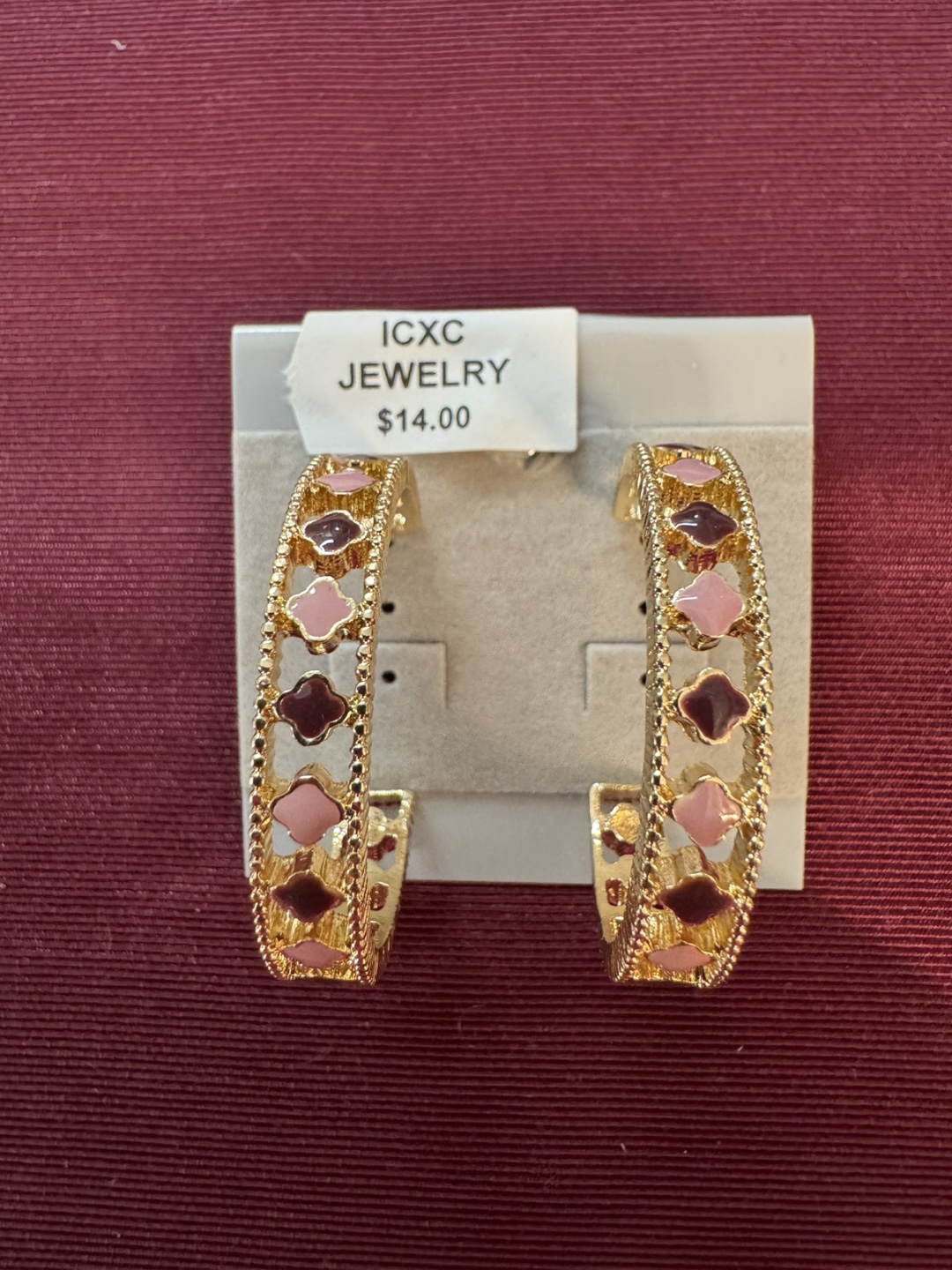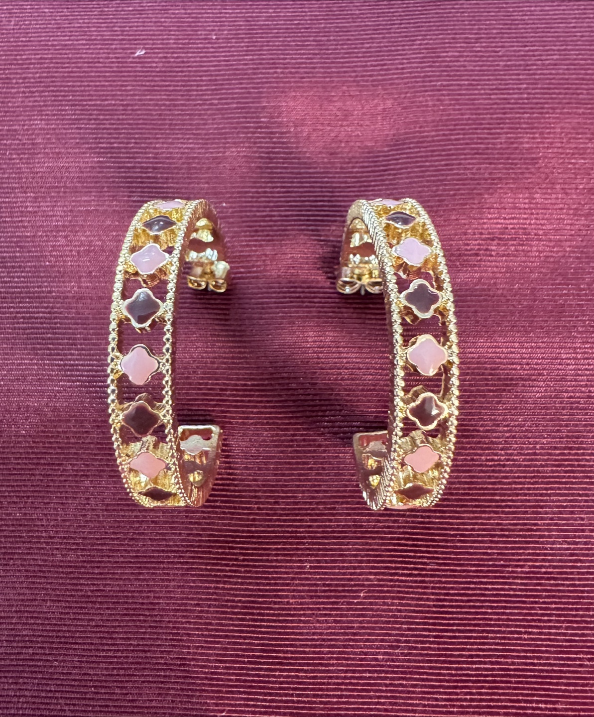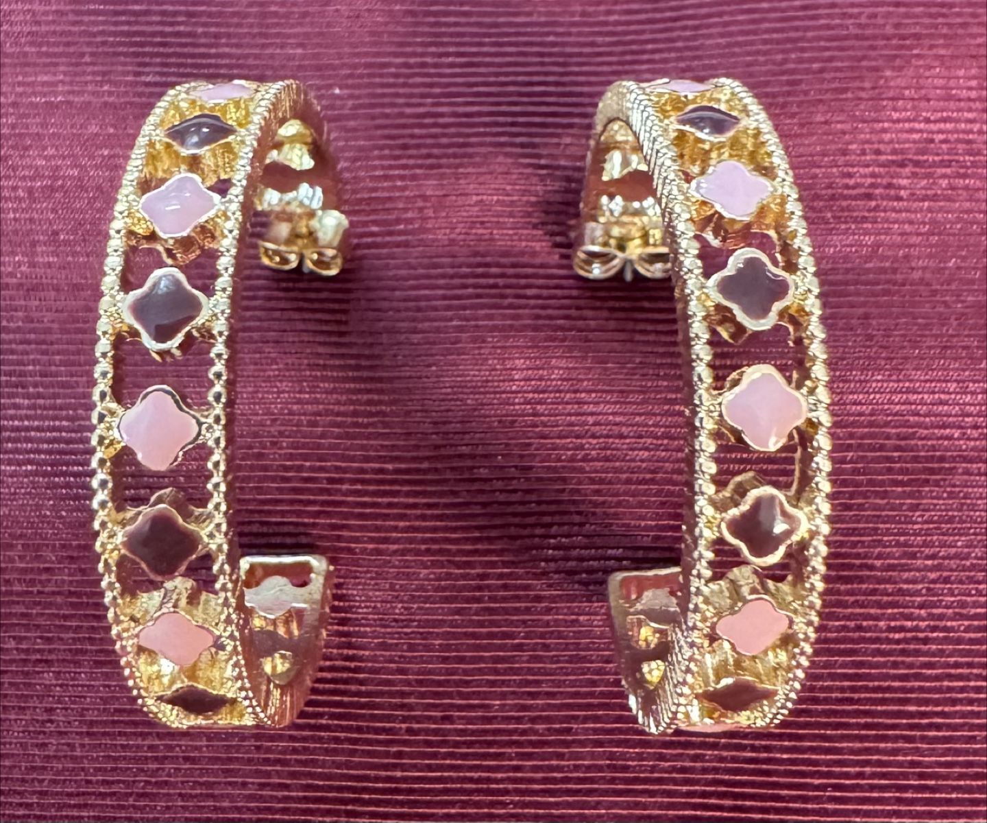 NEW! Gold Plated Hoop Earrings Clovers Pink & Plum Enamel